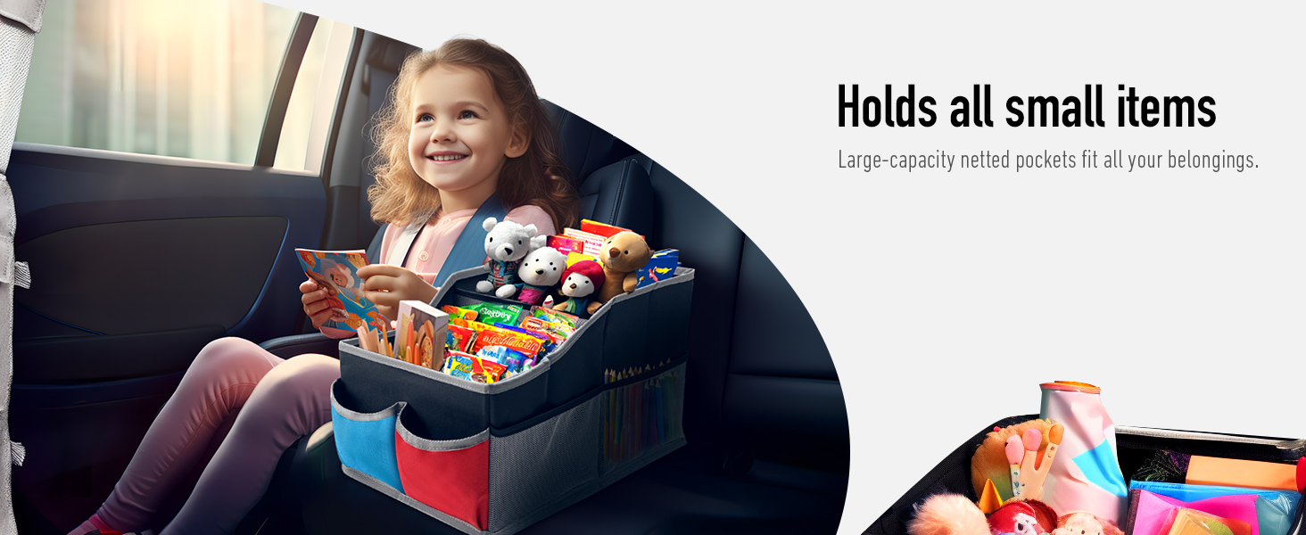 SNACKS & TOYS ORGANIZER】- Car back seat organizer can be used as a snacks, books and toys organizer, perfect for organizing backseat clutter and providing storage space for baby or children's items in the car.