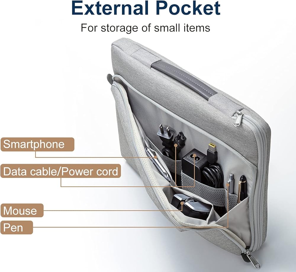 EXTRA FRONT POCKET-Additional small storage pouch bag for you to place computer-related accessories. Same color as the big sleeve bag, harmony, and stylish. You to carry nearby accessories with you while you organize, Such as mouse, pen, power cord, mobile phone, traffic card.