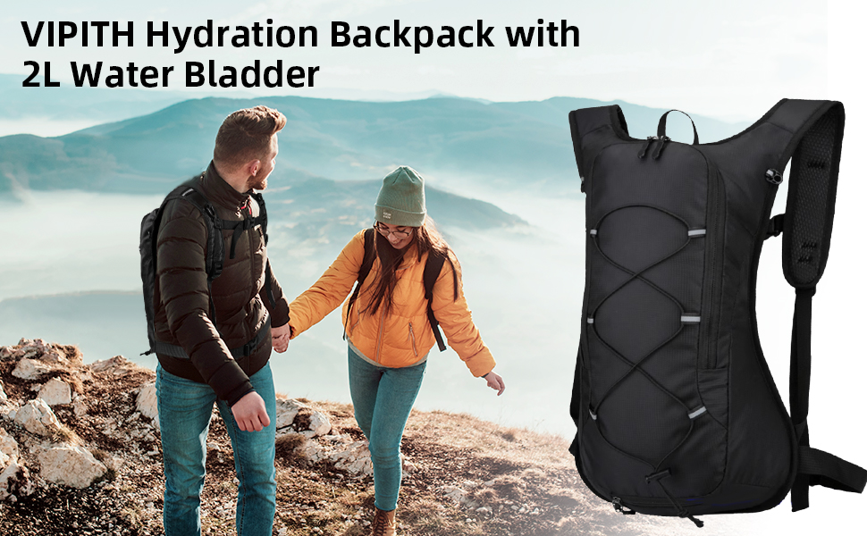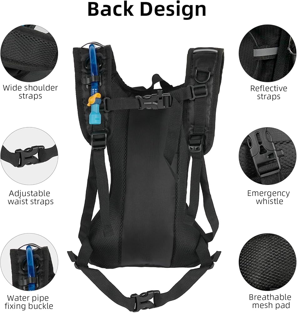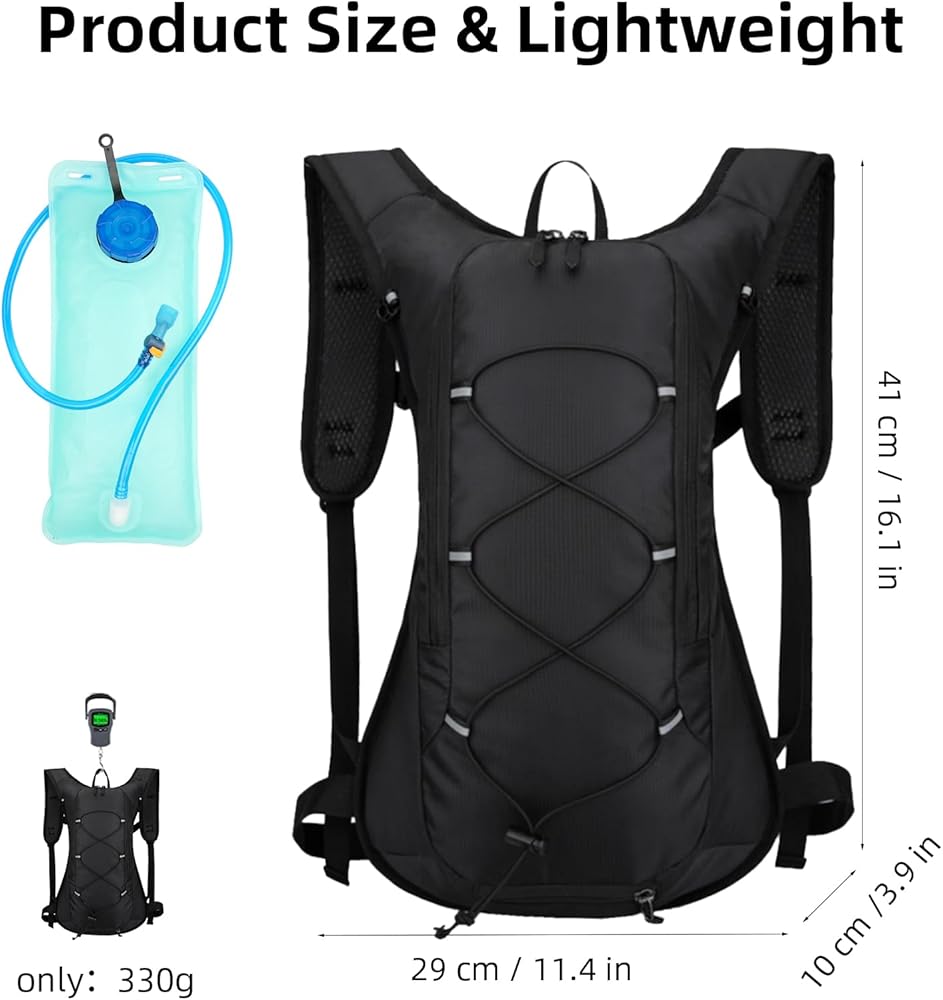 Hydration Backpack, Water Backpack with 2L Water Bladder, Lightweight Hiking Backpack High Flow Bite Valve Water Backpack, Hydration Pack for Hiking, Biking, Running and Climbing