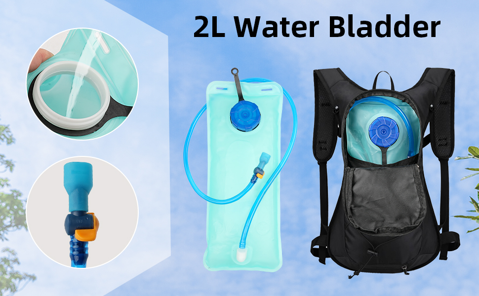 Large Capacity - The hydration pack comes with a water bag with a capacity of 2 liters, which can be separated from the backpack for easy cleaning and assembly. The water bag has a leak-proof design and an on-off valve design, which provides you with a lot of convenience. In addition, this backpack has more space for storage and is enough to hold your belongings such as tablet, wallet, books, mobile phone, charging cable, water bottle and umbrella, etc, making it ideal for sports lovers