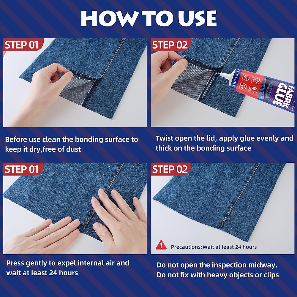 【Versatile Fabric Glue】This fabric glue permanent is highly versatile, suitable for a wide range of materials and projects. Whether you're repairing torn clothing, crafting intricate fabric decorations, it provides a reliable adhesive solution. Working well on cotton, denim, leather, polyester, and more, it's the perfect tool for various fabric-related tasks.