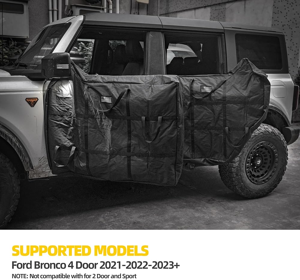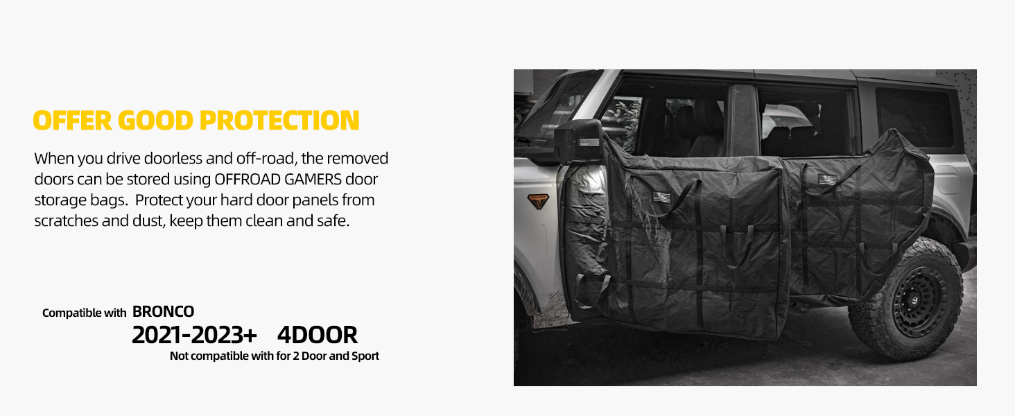 [Perfect Fitment] - OFFROAD GAMERS car door protector bag is designed for 4 Door edition Ford Bronco 2021 2022 2023. Developed with the original car, custom fit perfectly. ( Not compatible with for 2 Door and Sport).