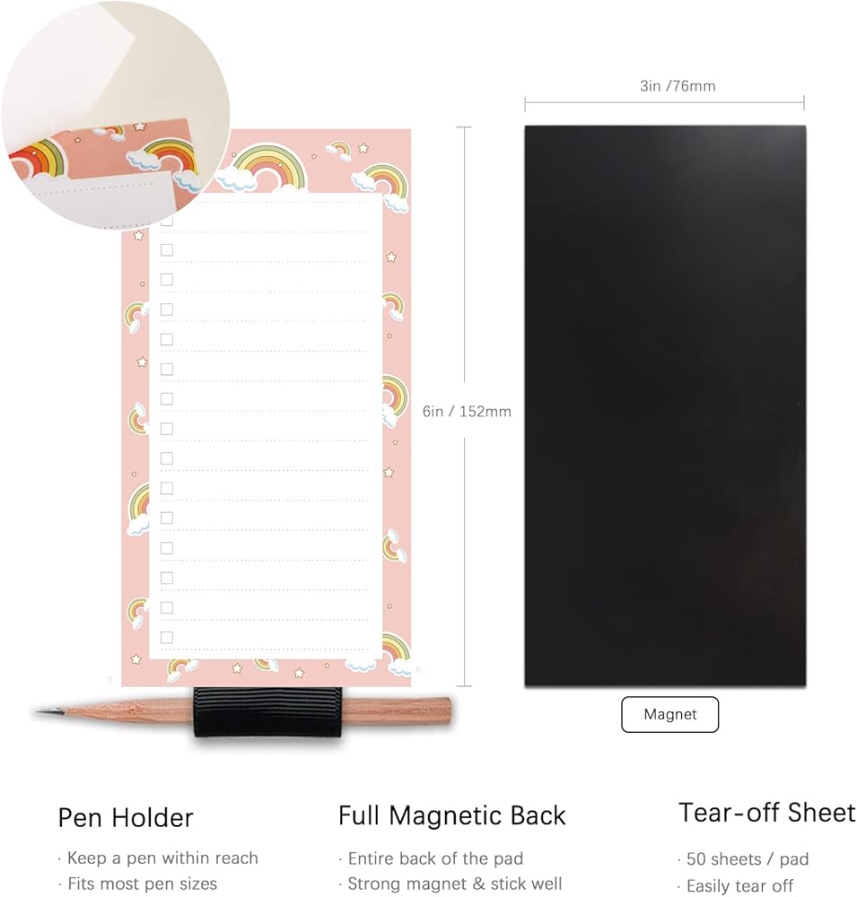 ZINCCO 6 Pack Magnetic Notepads for Fridge with Pen Holder, Full Magnet Back Notepad, To Do List, Grocery Shopping, 6 x 3 Inches, 50 Sheets, Magnet Memo Pad for Fridge, Locker, File Cabinet, etc.