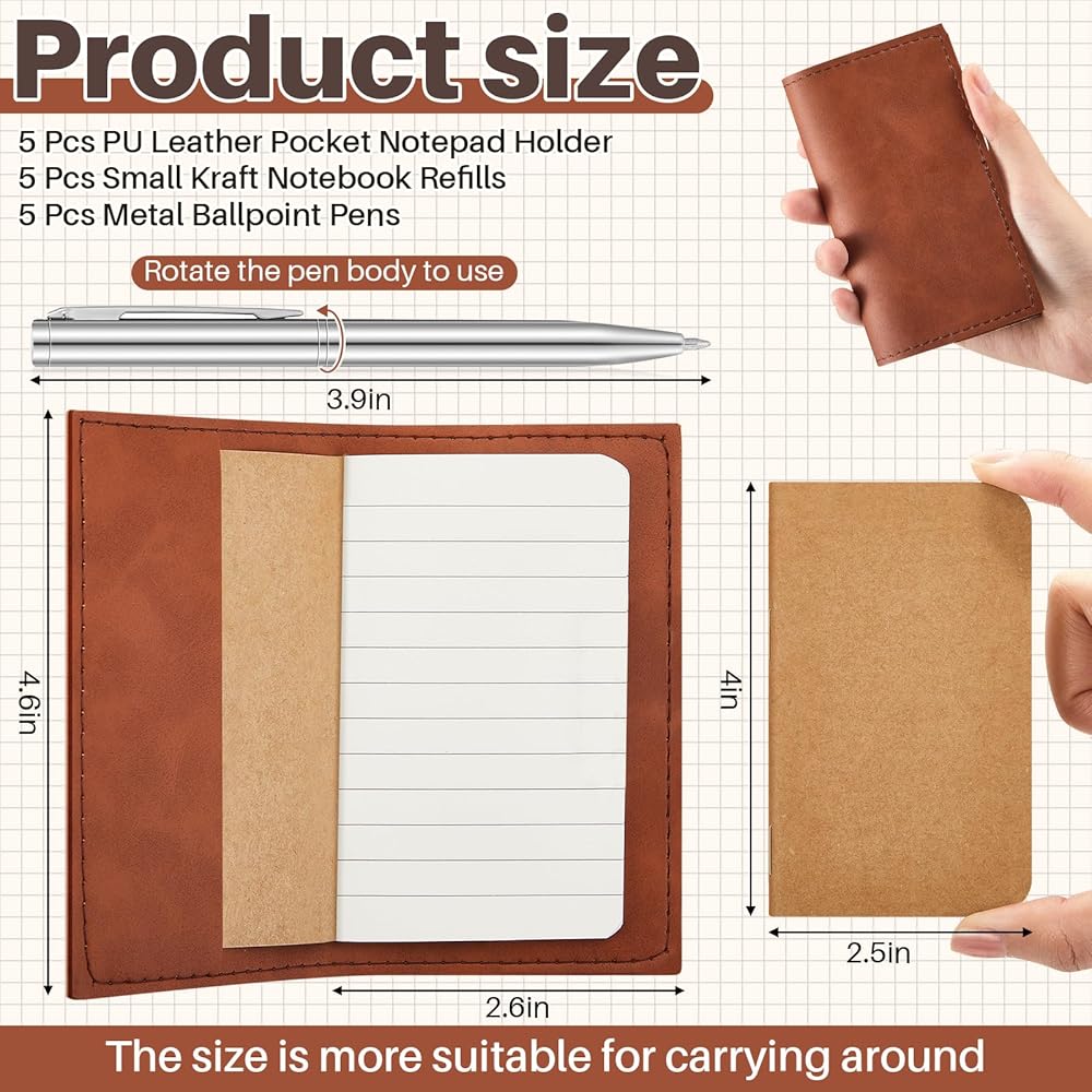 Leather pocket notepad holder: approx. 2.6 x 4.6 inches/ 6.6 x 11.7 cm