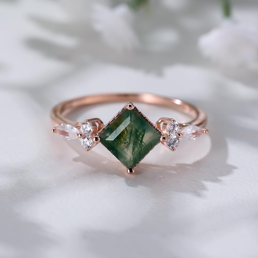 Natural Moss Agate: No two pieces of moss agate in the world are exactly alike, making the stones in each ring extremely unique! Its unique texture is reminiscent of swaying water plants, and love is like water plants in a river that twine around for a lifetime. So this ring is a one-of-a-kind love token, customized just for you.