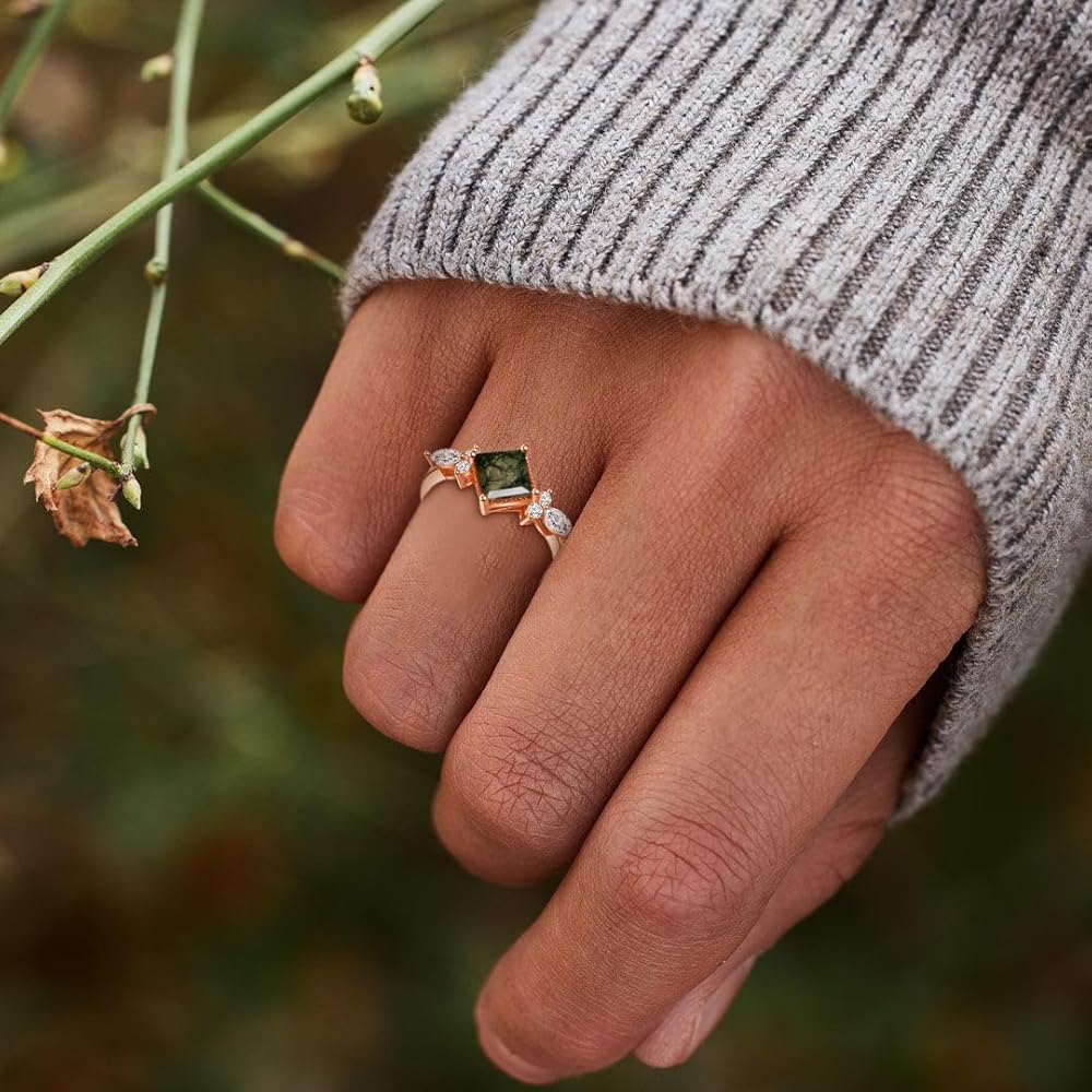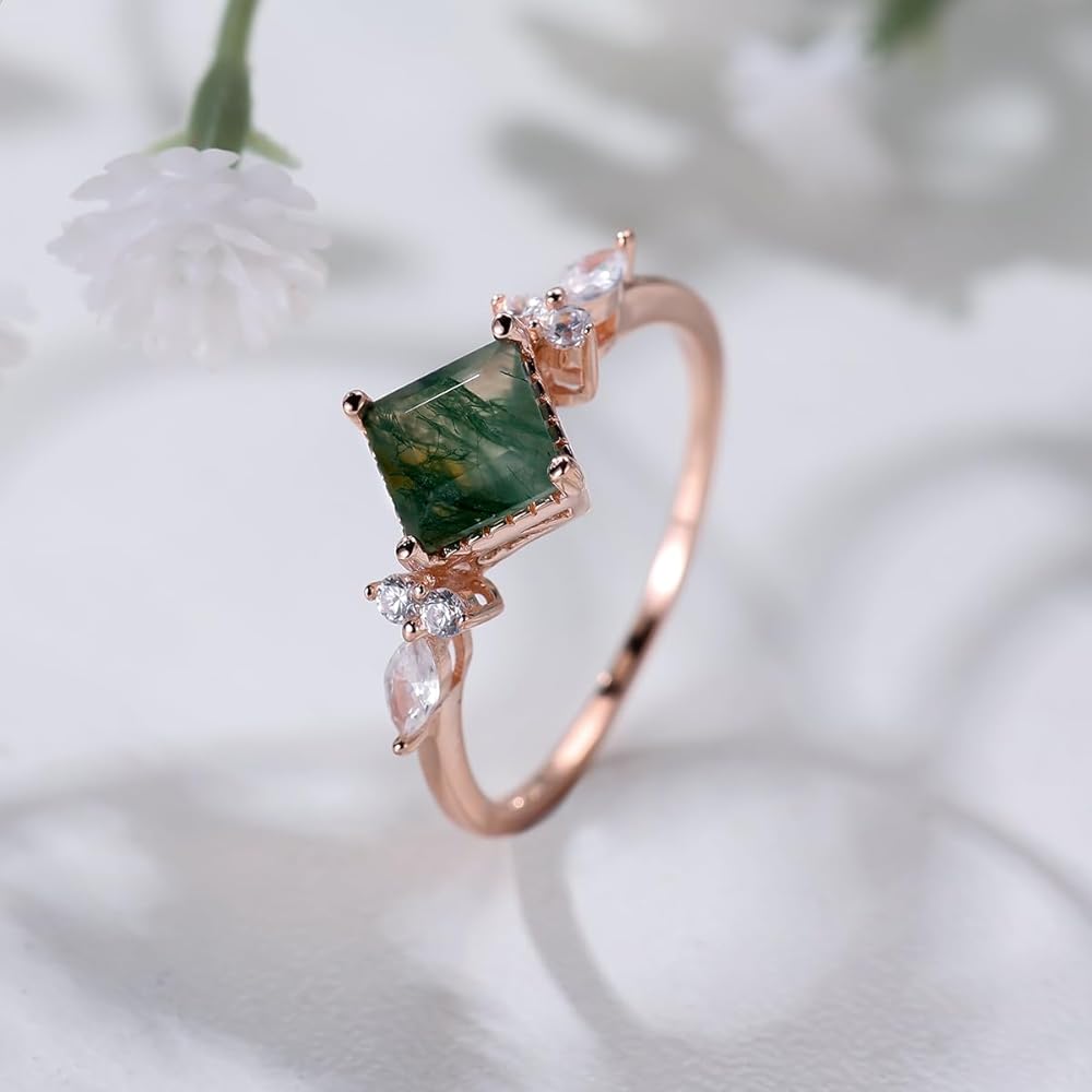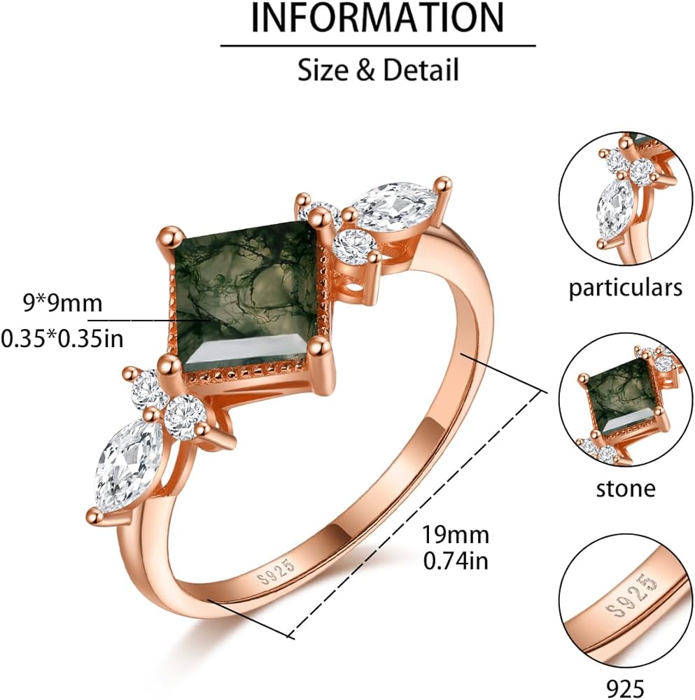 High Quality: The ring is made of high-quality natural green moss agate and S925 sterling silver plated with rose gold, which is not easy to break and fade. It is polished and has a smooth surface. It retains its luster over time, making it ideal for long-term wear. Contains no nickel or lead, no need to worry about your skin turning green, hypoallergenic and safe to wear even on sensitive skin.
