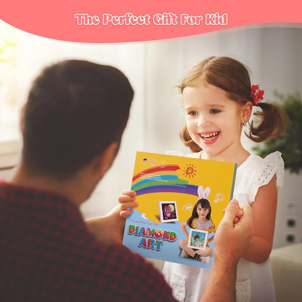 Genius maker Diamond Art Kits for Kids with Frame, Cartoon Diamond Art Kits Painting for Kids, Diamond Gem Art for Girls Boys, Diamond Dots Arts and Crafts for Girls, Painting for Decor 7x7inch