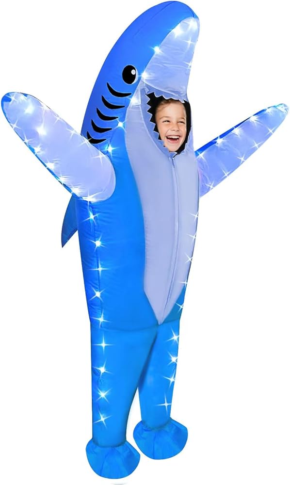Inflatable Costume Kids Shark Costume with LED Lights Halloween Blow Up Lighted Shark Costumes for Boys Girls Party Cosplay