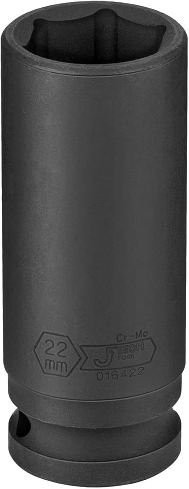 Founded in the 2000s, Jetech boasts a comprehensive range of tools with a strong focus on professional industrial-grade tools. We take pride in serving mechanics and users from over 60 countries and 5 continents. Jetech 1/2" Dr 22mm deep impact socket is designed for professional use with impact tools. Durable Cr-Mo material together with cold forging and heat treatment ensures high quality, strength and working ranges. Its 6-point design provides a more exact fit. Easily recognize the size with clear markings on the tool itself. Radius corner design protects the fastener and socket, prolonging the lifespan of both this tool and the fastener.