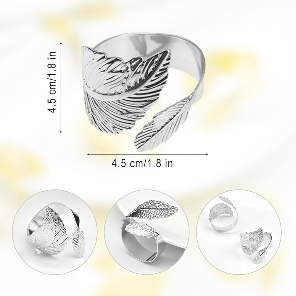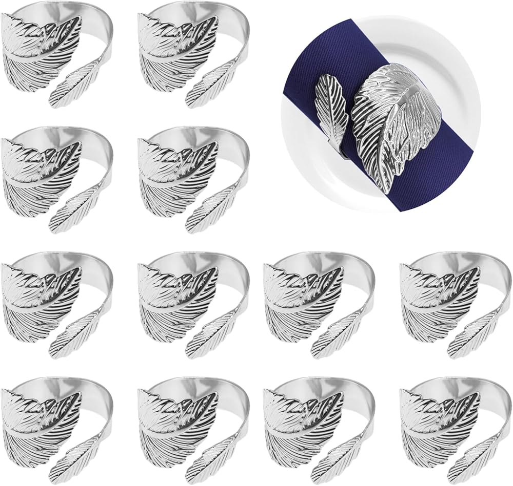 PACKAGE INCLUDED You will receive 12pcs silver leaf shaped napkin rings, each measuring approximately 1.8 inches in diameter, fits most napkins, elegant look and plenty enough to meet your daily party needs.