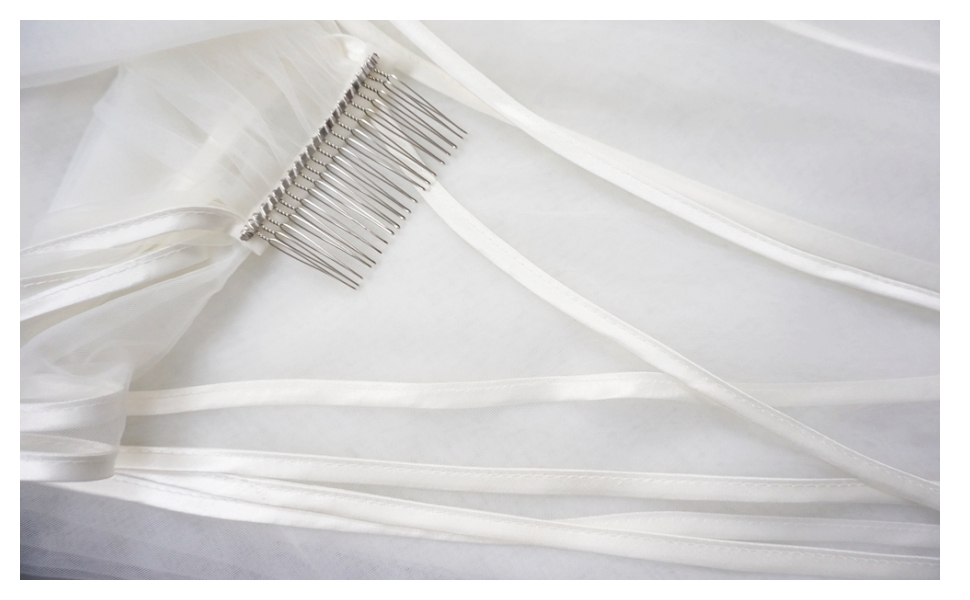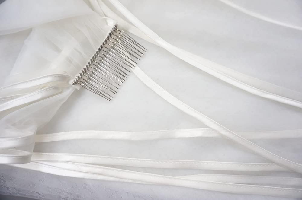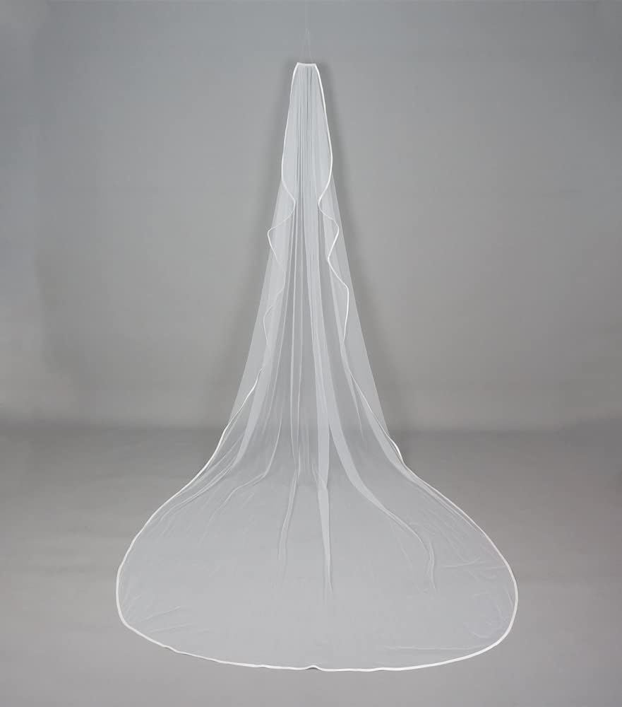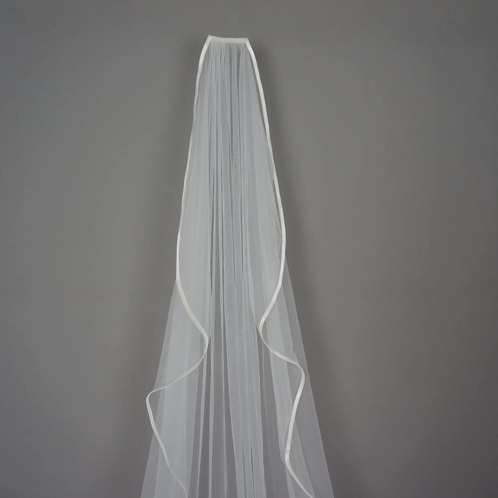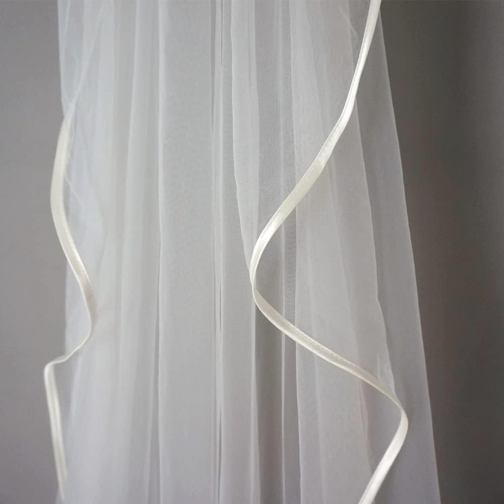 Ribbon Wrapped Edge Cathedral Wedding Veil with Comb One Layer 1 Tier Simple Elegant Bridal Hair Accessory