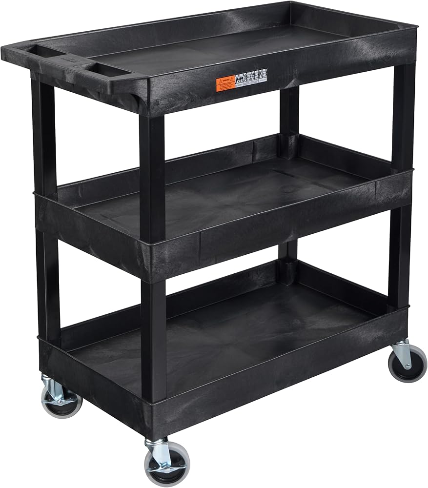 Tubstr 3-Tier Rolling Utility Cart with Wheels | Supports 300 lbs. Total | Heavy-Duty Capacity for Garage Storage, Office Spaces, & Kitchen Use | Durable Tool Cart with Locking Wheels (Black, 32 x 18)