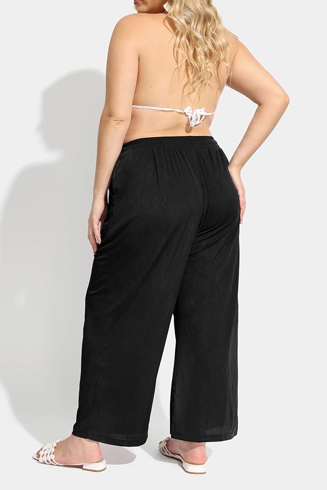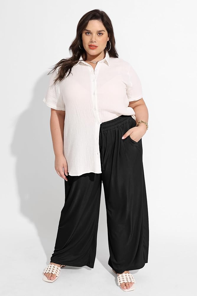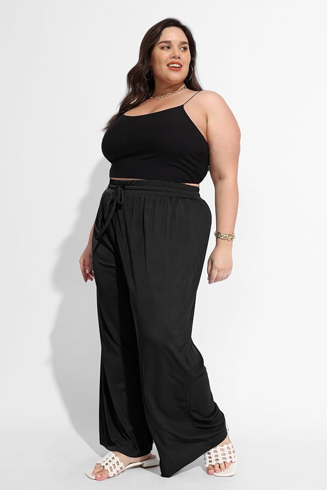 Features: Elastic high waist with Drawstring and Pockets, maxi length, Wide Leg, Solid Color, Loose Fit Pants. Basic pants never go out of style.