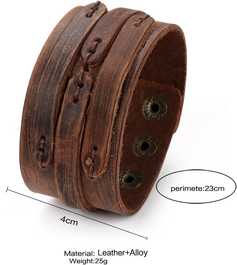 Size Information: This Leather bracelet length is 9 inch (23 cm), width 1.6 inch (4 cm) and come with three adjustable buttons.
