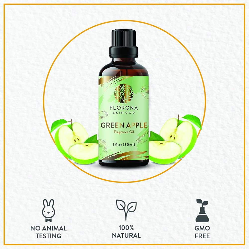✅RECOMMENDED USE- Florona Green Apple fragrance oil is great for soap making, creating your own candles, air freshener spray, skin and hair care formulations, cleaning products, for use in home aroma diffusers, scented dryer sheets, to freshen a drawer, potpourri, freshen carpets, massage/body oil, sugar scrubs, bath bombs, perfume, cologne and much more. It is best suited for gift purposes as well.