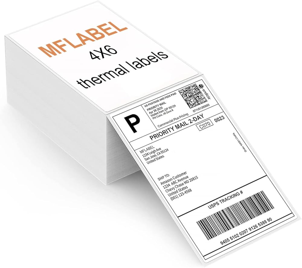 👍【MFLABEL Labels 】 4 inch x 6 in (101.6mm x 152.4mm). 500 shipping labels per stack. Waterproof and Oil-proof Smudge-Free and Resists Scratches, Water, Dirt, Dust, and Grease. Blank 4x6 mailing label with the perforated line for easy peeling.