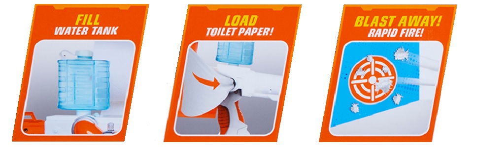 Holy Sheets! Toilet Paper Blasters Sheet Storm Transforms Regular Toilet Paper Into High Powered Spitballs! Splatter The Competition With Rapid Fire Pump Action Up To 50 Feet! One Roll Of Toilet Paper Gives You 350+ Rounds Of Non-Stop Spitball Action. Spitballs Go Exceptionally Far And Stick To Most Anything They Hit In Classic Spitball Fashion. Easy Clean Up, Bio-Degradable & Does Not Stain (Leaves No Skid Marks). Grab A Roll Of Toilet Paper And Blast Away! Please Note, Slight Water Leakage Is Normal During Play. Toilet Paper Not Included (We Hope You Already Have Some At Home!) Recommended For Ages 8 Plus.