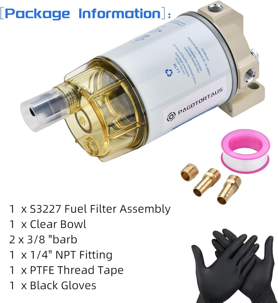 🌱[Package Information]:1 x S3227 fuel filter assembly with clear bowl and 3/8 "barb x 1/4" NPT fitting.