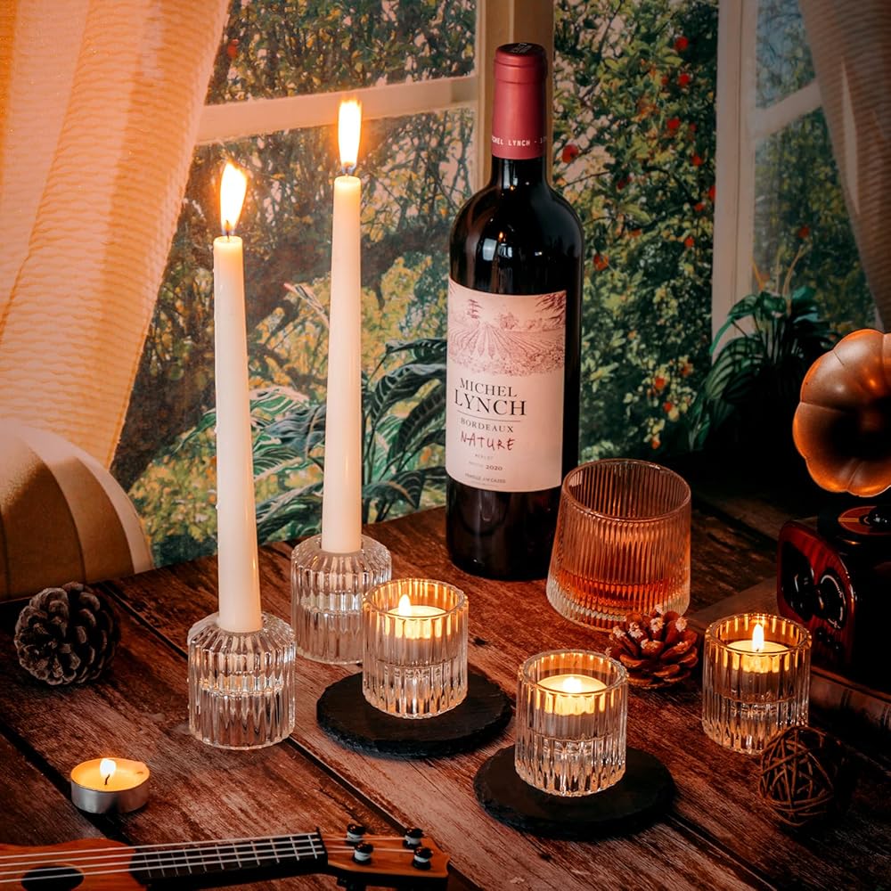 • Wide Usages: these clear candle holders can be applied to different occasions, such as dining table, bedroom, living room, kitchen, wedding, birthday, anniversary, Christmas, Thanksgiving Day, and more, providing a wonderful memory for you