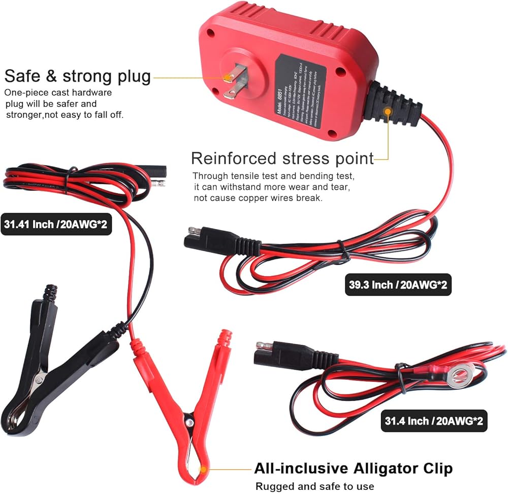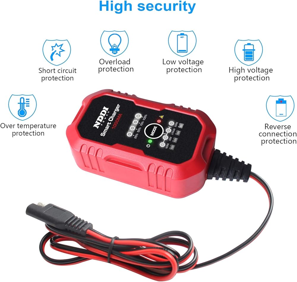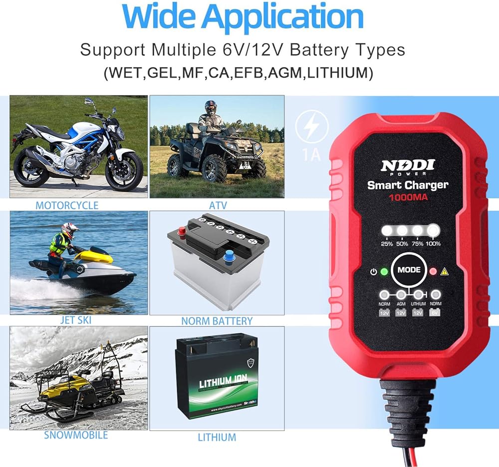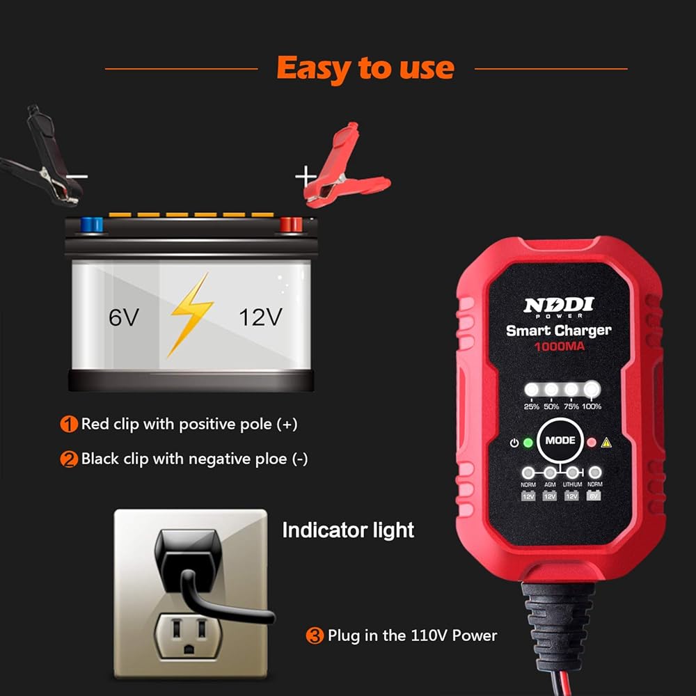 ✅【Easy to Use】: NDDI POWER trickle charger features with detachable ring or alligator connectors, charge and maintain your battery wherever you go; The microprocessor controlled program will monitor the whole charging progress and automatically switch to floating mode when the battery is full.