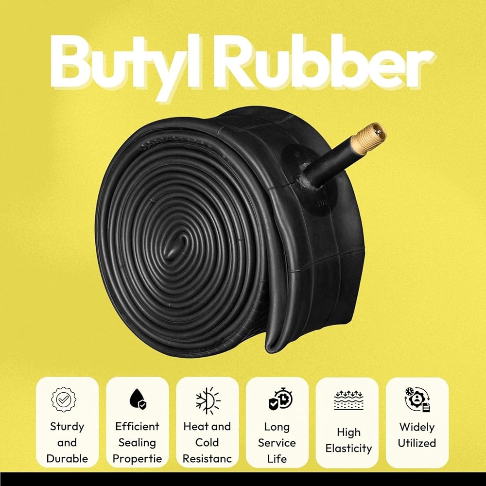 𝐃𝐮𝐫𝐚𝐛𝐥𝐞 𝐚𝐧𝐝 𝐑𝐞𝐥𝐢𝐚𝐛𝐥𝐞: Butyl Rubber is celebrated for its durability and reliability. It can withstand the rigors of cycling, including impacts from rough terrain, bumps, and debris encountered during rides.