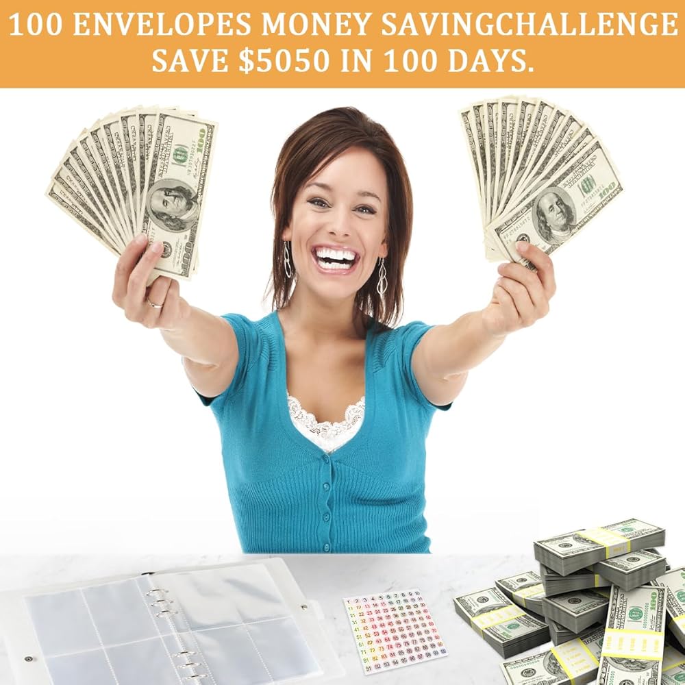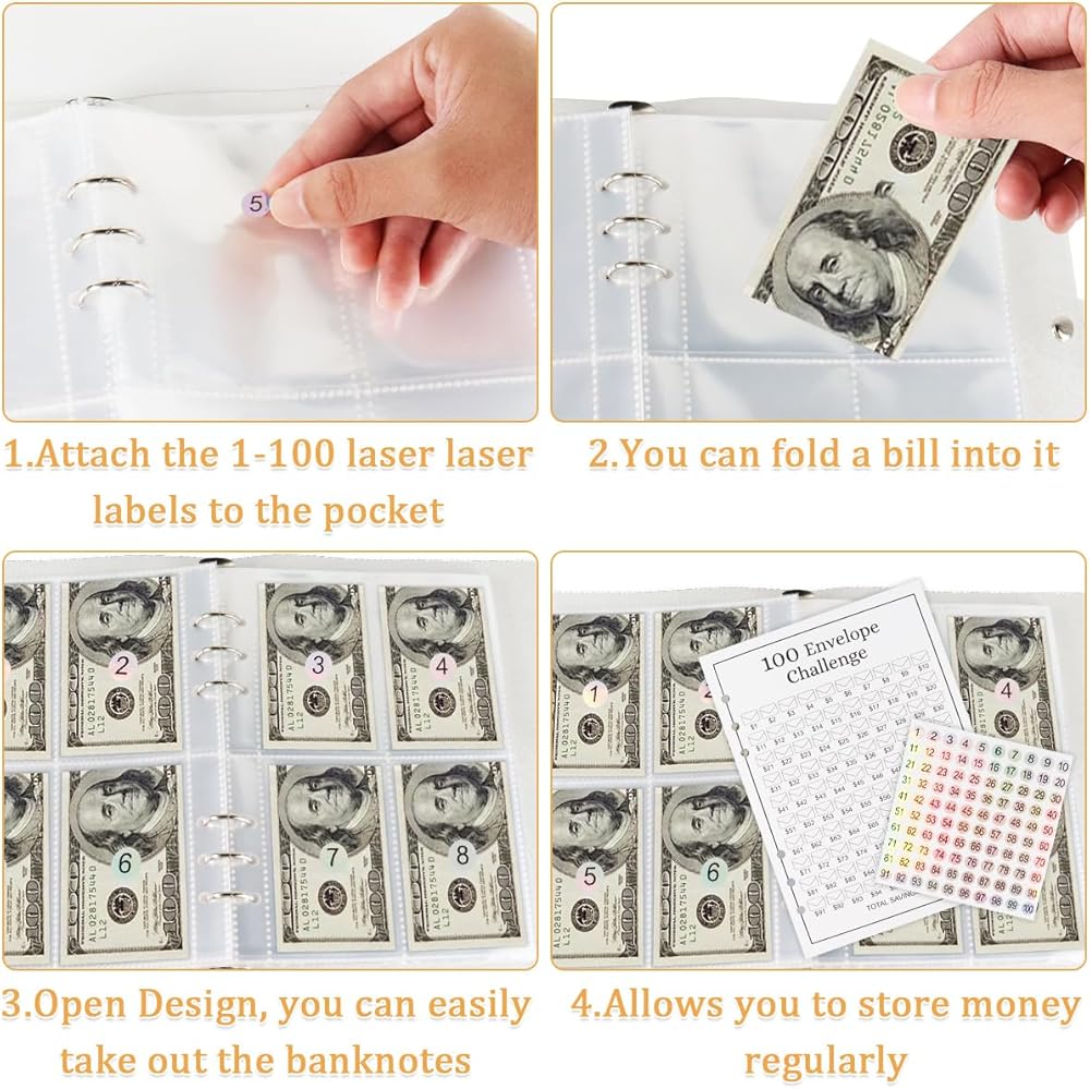 100 Envelope Challenge Binder, 2024 Shiny Cover Binder Savings Challenge Book, 100-Day Money-Saving Binder Challenge with Goals, Easy and Funny Way to Save $5,050