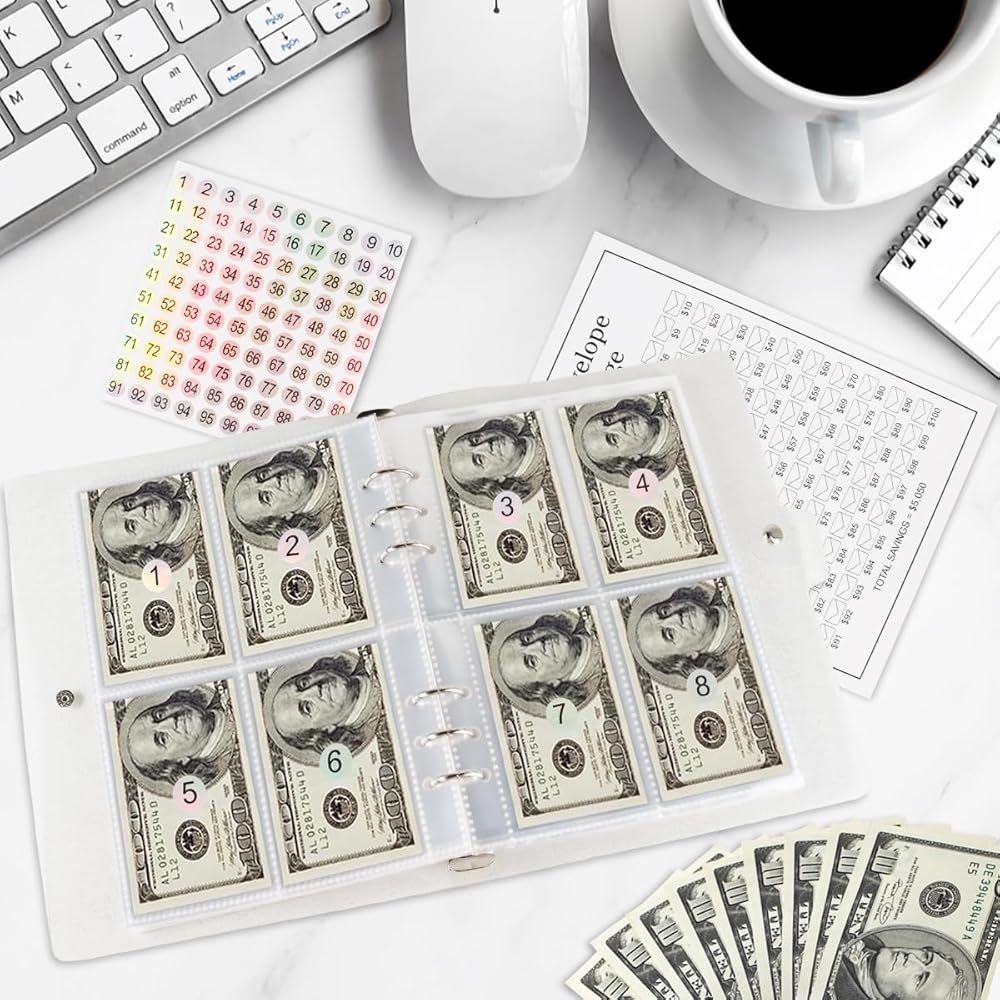 💰 100-DAY MONEY SAVING CHALLENGE: Start by marking pockets 1-100 with number stickers, put $1 in pocket 1 on the first day, $2 in pocket 2 on the second day, and so on. In the end, you'll get $5,050! Of course, you can also save money regularly according to your own plan every day. After 100 days, it will definitely exceed US$5,050!