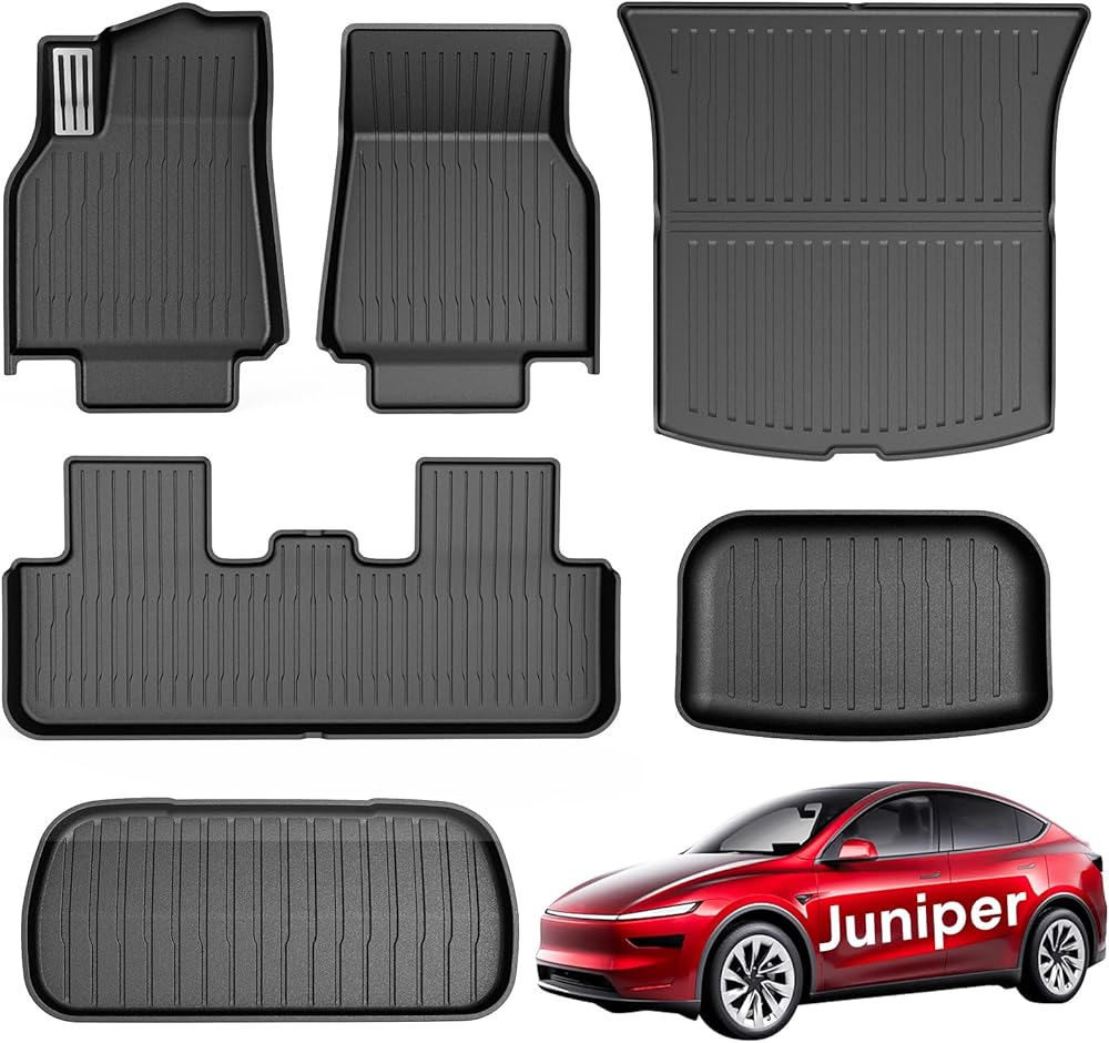 Upgrade Floor Mats for Tesla Model Y Juniper Accessories 2025-2026 (5-Seater) (Not for Model Y Juniper Standard), All-Weather TPE Waterproof Wear-Resistant Heavy Duty Floor Liners 6Pcs