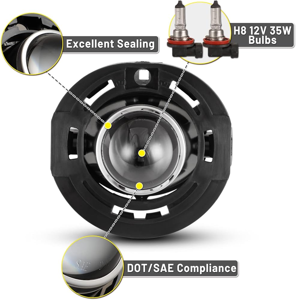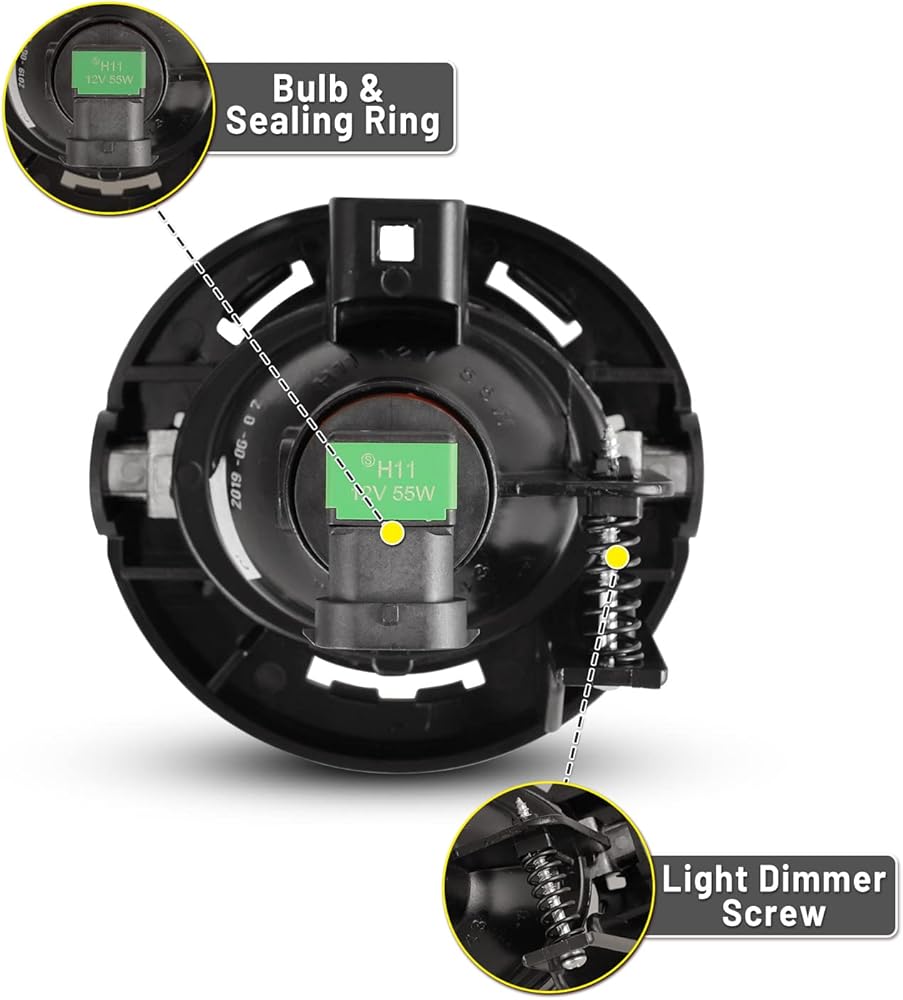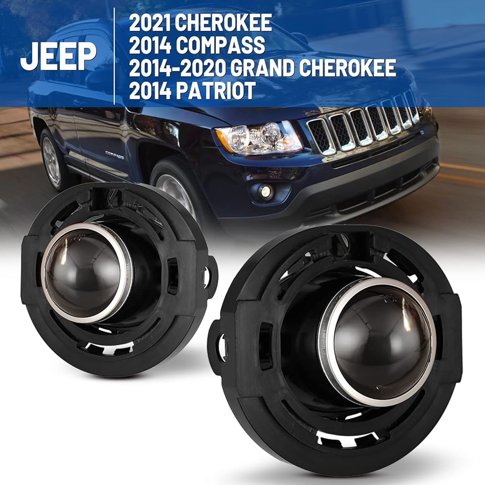 SPECIFICATION * COMPATIBLE VEHICLES : 2021 Jeep Cherokee 2014 Jeep Compass 2014-2020 Jeep Grand Cherokee 2014 Jeep Patriot NOTES : Please make sure this item whether fits for your vehicle before you purchase. * Exact Fit OEM# : L=R : 5182021AB;108A125OEU * Bulb Type : 12V/55W H11 Bulbs * PARTSLINK# : L=R:CH2594105 WHAT YOU GET * Fog Lights x 1 set (driver + passenger side) * 12V/55W H11 bulbs (included in the fog lights ) NOTES : Wiring kit & Switch group , Installation manual are NOT Included. HOW TO INSTALL Factory Bolt-on, Plug & Play 1. Undo the screws, clips, or retainer springs that hold the fog light in place. 2. Disconnect the wiring from the assembly. 3. Detach the fog light from the vehicle to replace it with a new one. 4. Fit in the new fog light assembly. 5. Fix the new fog light into place and make sure that the screws, clips, or retainer springs used are sealed. 6. Reconnect the wiring that was unplugged from the assembly. 7. Put back the grille and other components that you removed. Seal them back into place. 8. Test the new assembly. * NOTE : If it is necessary to replace the bulb, lamp body and bulb are not tight enough to produce water mist,or bulb is not fit lamp body originally. Professional Installation is highly recommended.