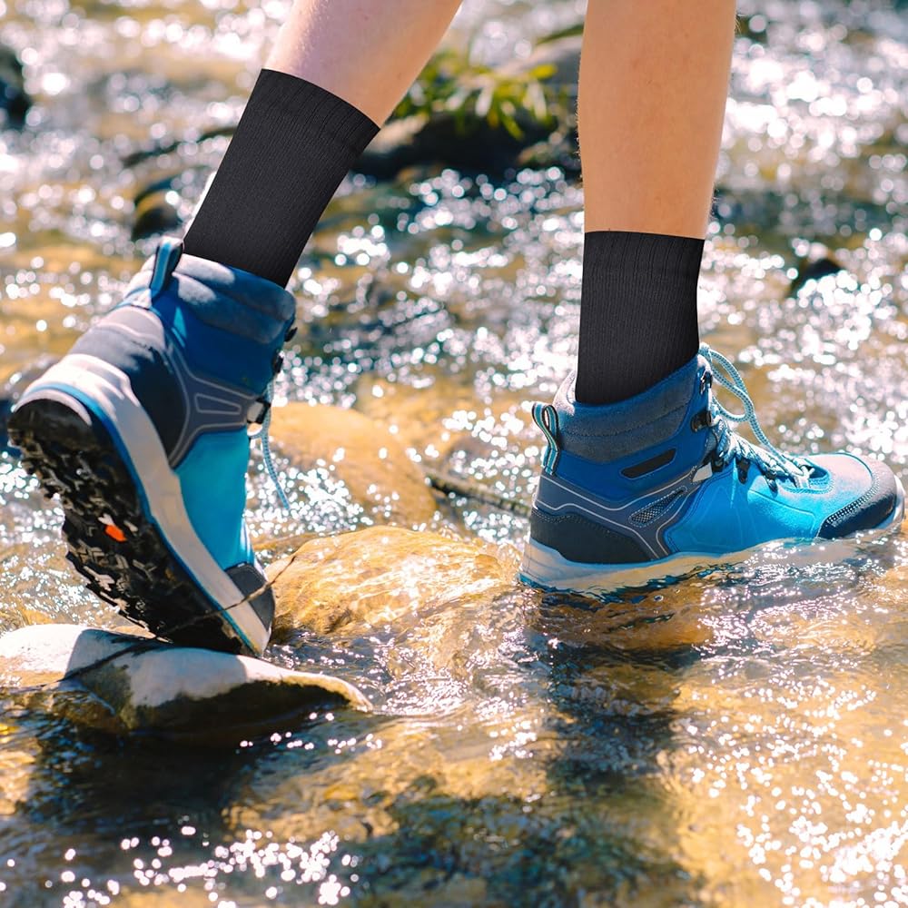 Comfortable to Wear: large size fits us shoe sizes 6.5-9, which makes them a comfortable pair of outdoor waterproof socks; Flexible support and reinforced pads make our waterproof hiking socks men comfortable for hiking, walking or any other outdoor activities provides foot comfort in
