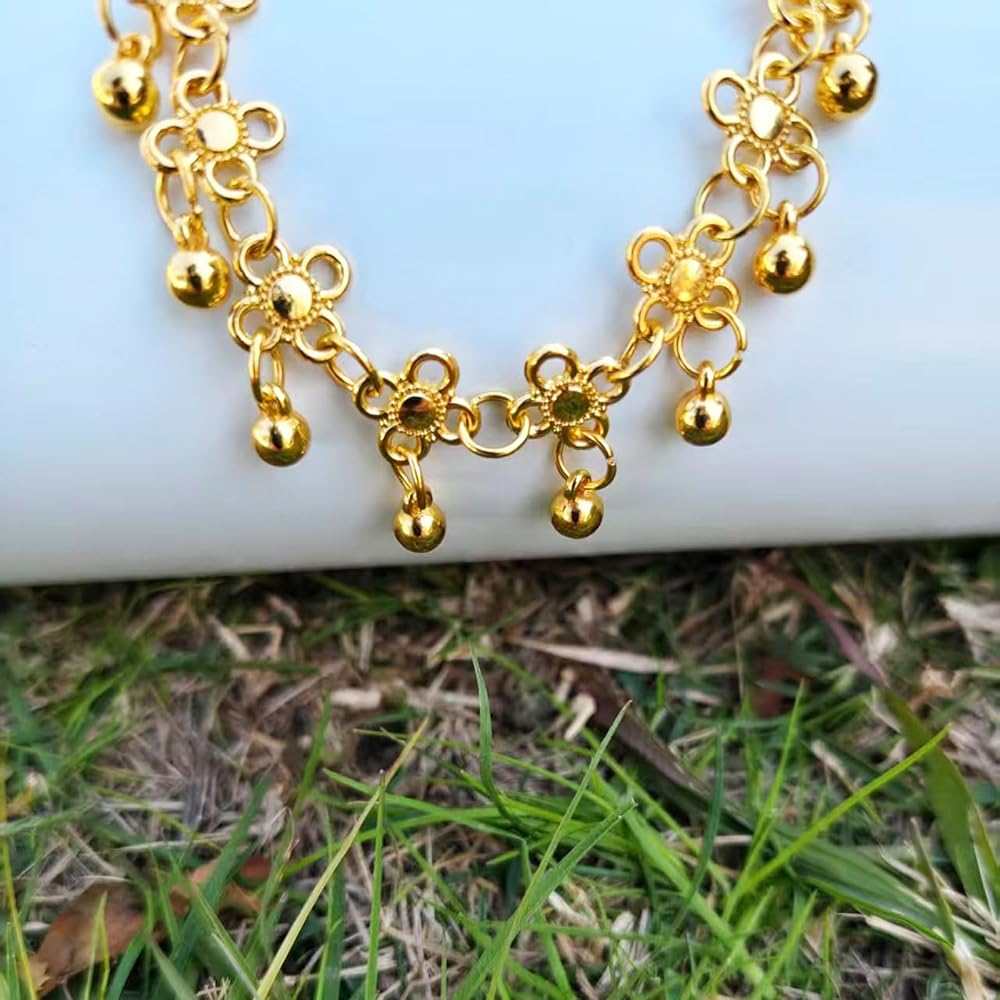flower anklet: there are two colors, gold and silver, with gold done in a retro design that looks like old, adding a mature atmosphere. no lead no nickel low allergy, please keep dry when not wearing.