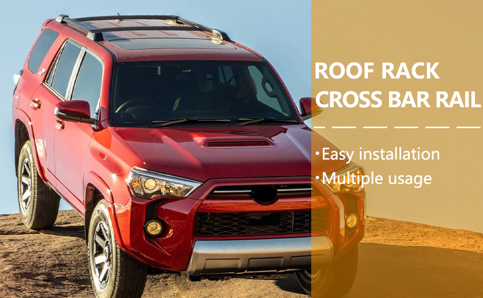 【Car Maximize Capacity】Roof rack cross bar rail supports a maximum weight of 220 lbs (98 kg). T0*yo-ta 4runner roof rack cross bars made from high grade aluminum. lightweight, easy to install and dismantle.Heavy duty roof rack cross bars provides a good base and convenience for surfboards, camping gear, canoes, kayaks, bicycles, skis and other rooftop accessories.