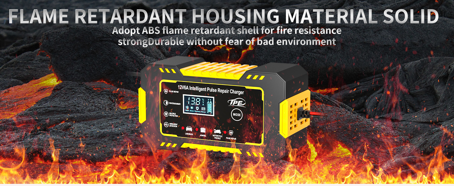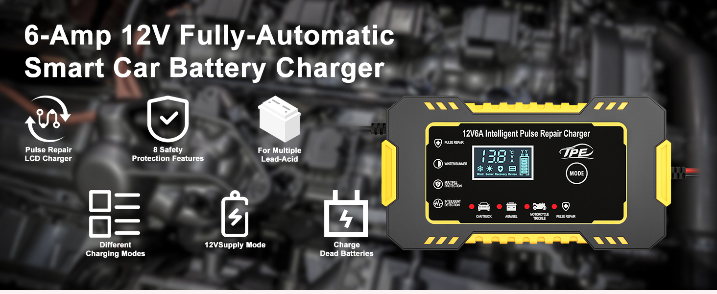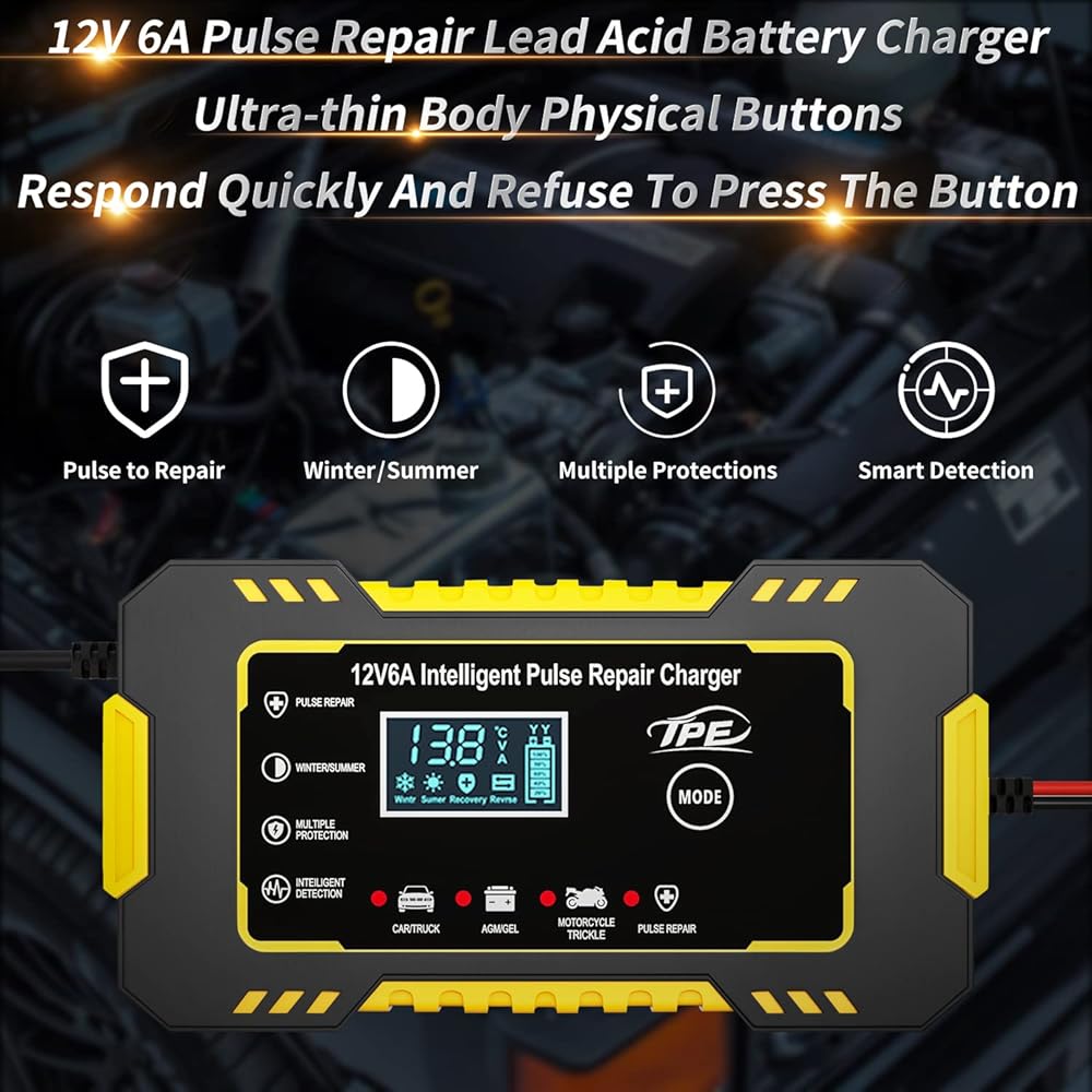 TPE Car Battery Charger 6 Amp 12V Battery Charger Automotive, Trickle Charger for Car Battery Smart Battery Charger for Lead Acid Batteries Car Truck Motorcycle Lawn Mower Marine