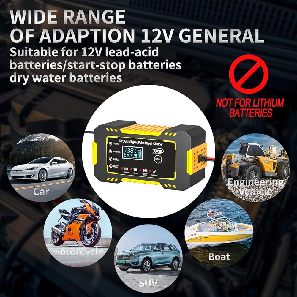 【Versatile Compatibility】This intelligent charger is designed to work with most types of lead acid batteries including Calcium, GEL and AGM Wet EFB etc. making it a perfect fit for a variety of applications such as cars, motorcycles and more.