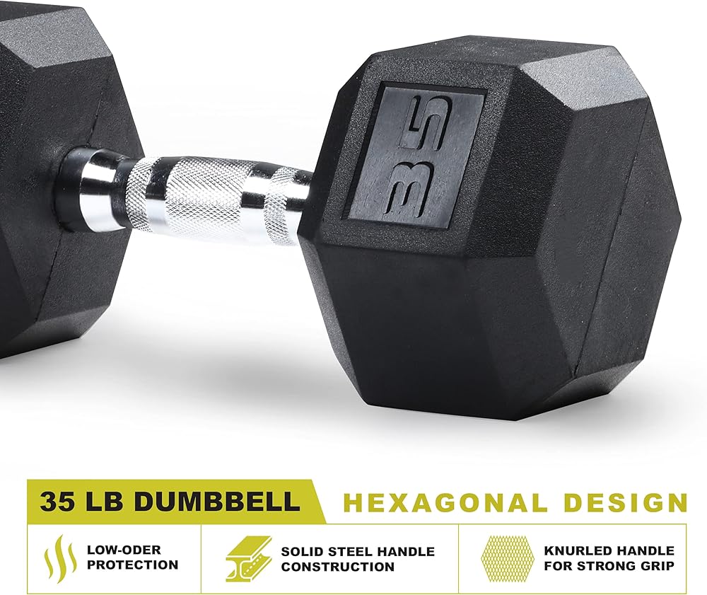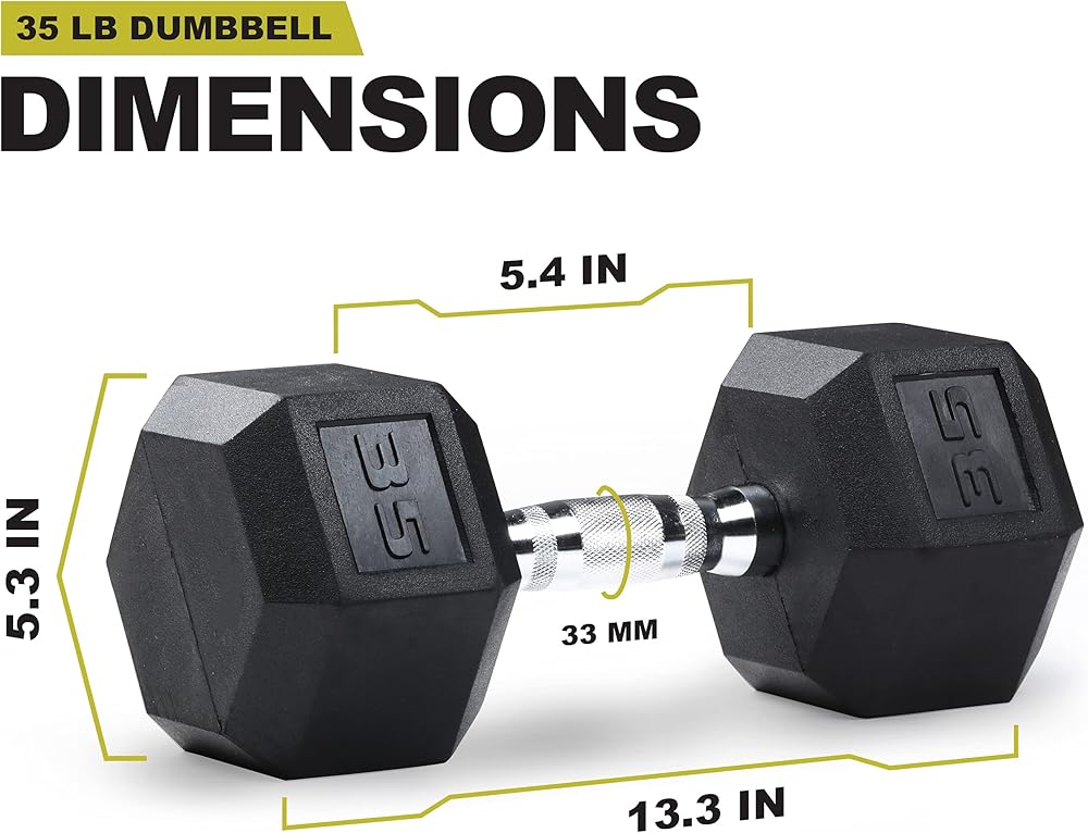 The PRCTZ Rubber Encased Hex Shaped Dumbbell is offered in multiple weight levels for you to choose from and its chrome contoured handle design allows this dumbbell to fit any free weight and strength training exercise at home or group workout with training partners! Our hex shape and rubber encased dumbbell has functional details such as textured handle for a tight and secure grip, rubber coated ends to protect flooring and reduce noise, and hex shape prevents rolling and stacks easily. PRCTZ LLC has been the leader of fitness training accessory and equipment since 1986, and all our products are 100% safety regulated being the #1 trusted choice by exercisers at any skill levels. We continue to innovate and create new ways to encourage active and healthy lifestyle.