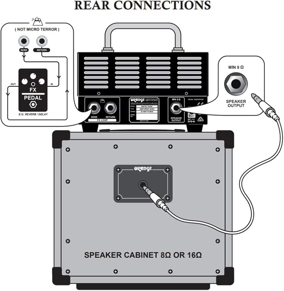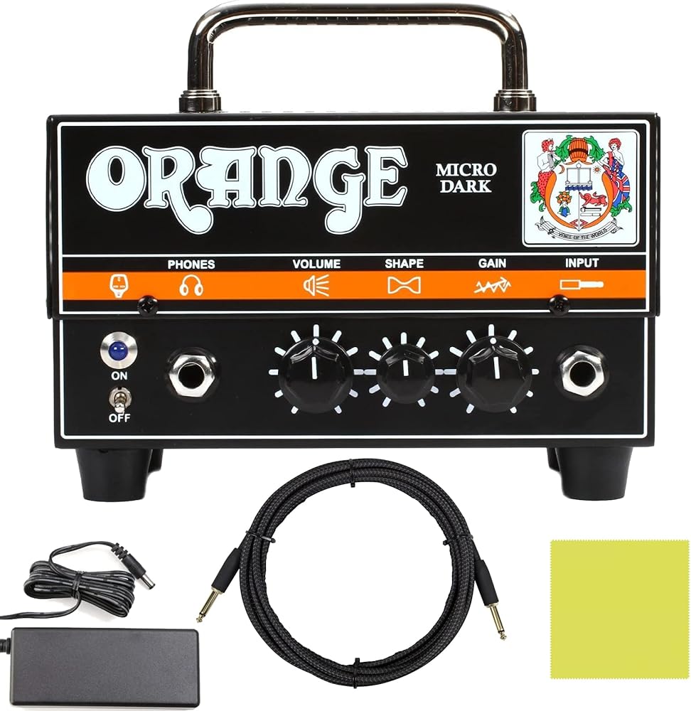 INCLUDES - Orange Amps Micro Dark MT20 20W Amp Head, 2A Power Supply, 10 foot Pig Hog Black Woven Instrument Cable 1/4"-1/4" Straight Gold-plated connectors & Liquid Audio Polishing Cloth.