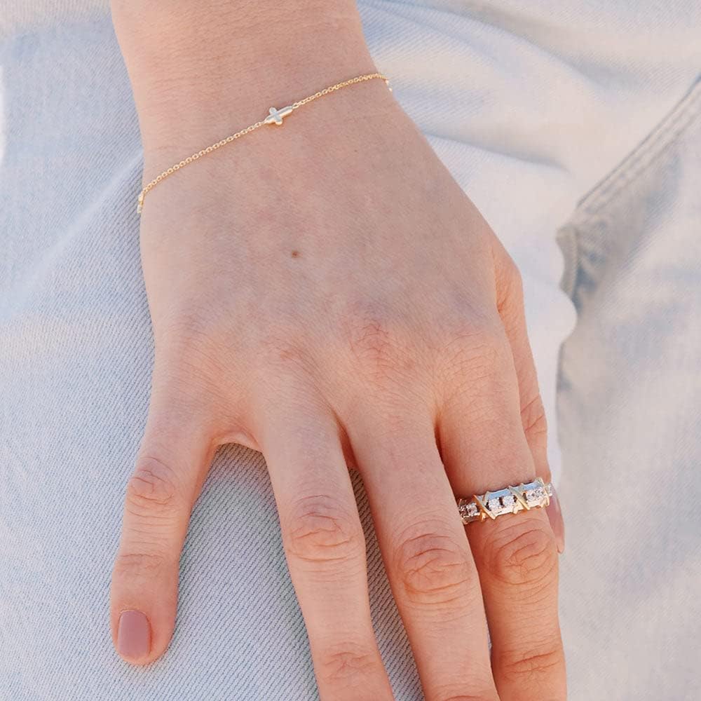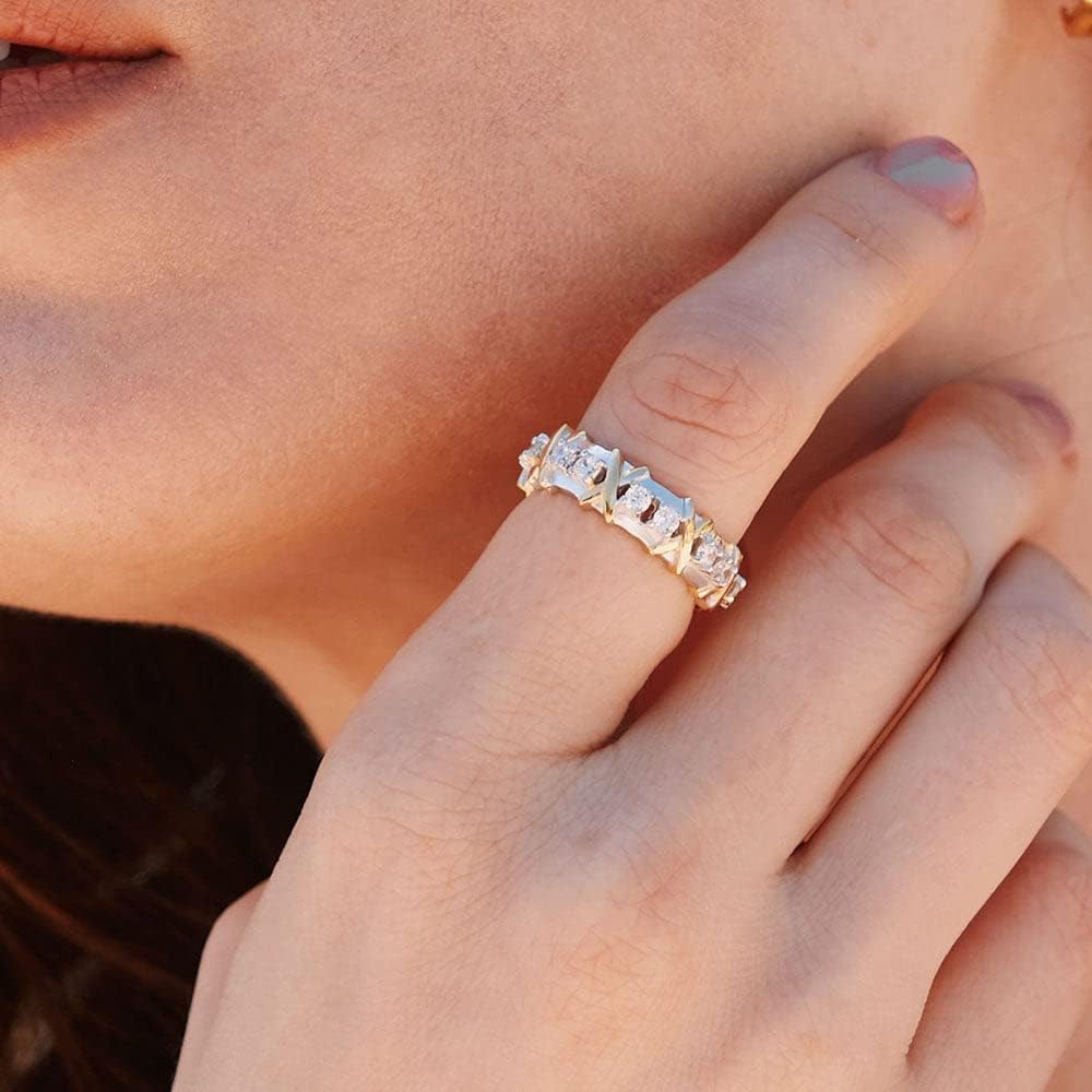 Sterling Silver & Gold Tone Designer Style CZ X Ring (ring sizes 5 to 9) - Women's Fashion Ring - Sterling Silver Ring for Her - Alternative Wedding Ring - Gift for Her - Birthday Gift - Gifts for Mom
