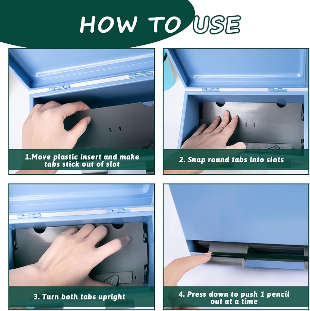 ✍️【Durable Pencil Dispenser Holder】Our pencil dispenser holder for classroom is the perfect desk organizer for teachers who need classroom supplies for teachers elementary, middle school, or kindergarten. The sharp-dull pencil holder is made of high-quality stainless steel material with a hinged top, which is sturdy, durable, impact resistant, reliable, not easy to break, and can serve you for a long time.