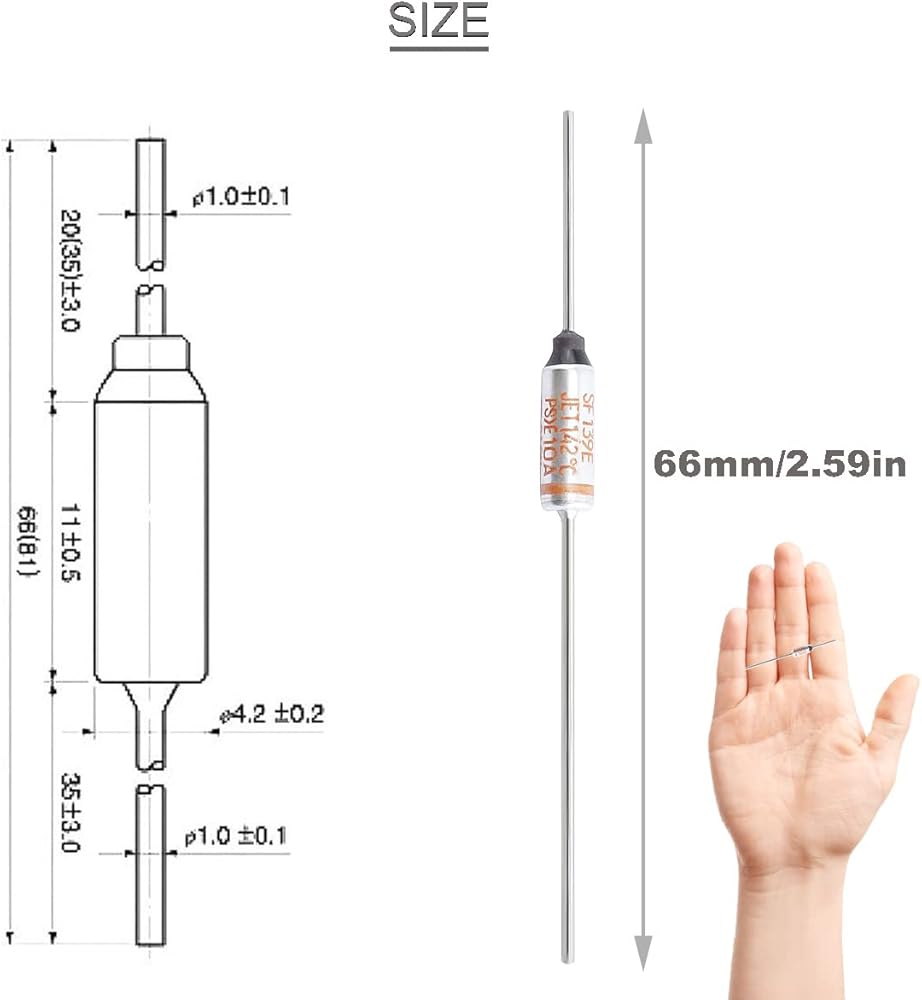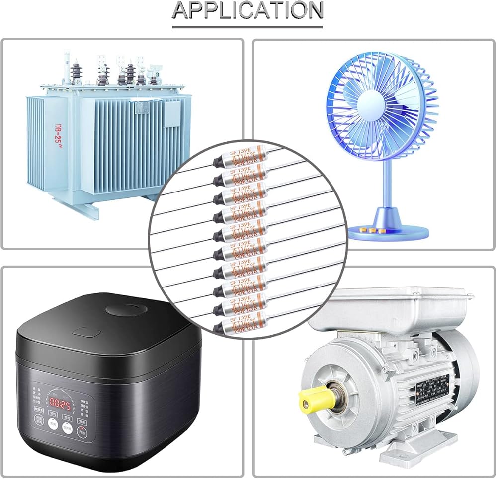 It consists of a sliding contact, a spring, and an electrically nonconductive thermal pellet.Before the thermal fuse is activated,current flows from the left lead to the sliding contact and through the metal housing to the right lead.When the external temperature reaches a predetermined temperature, the organic matter meltsand the compression spring becomes loose.That is, the spring expands and the sliding contact is separated from the left lead.The circuit is opened and the current between the sliding contact and the left lead is cut off.