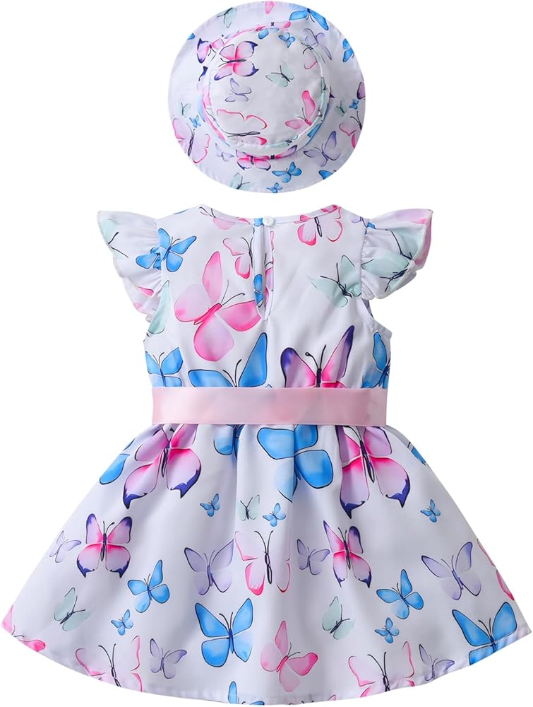Baby girl summer clothes: ruffle sleeveless butterfly pattern dress with hat, your princess will be more simple, elegant and cute in this dress.