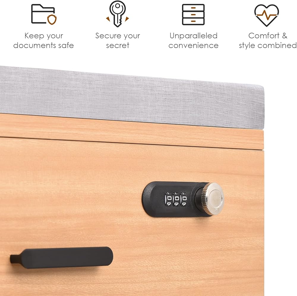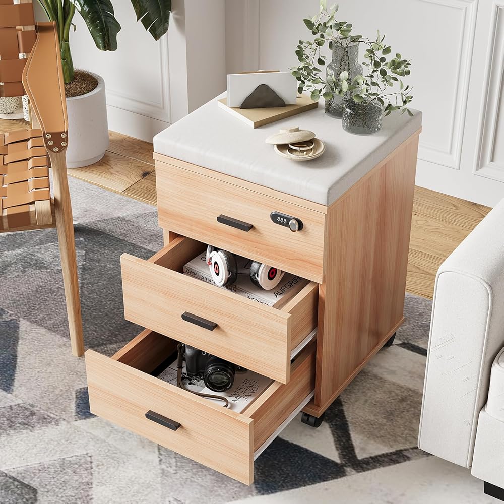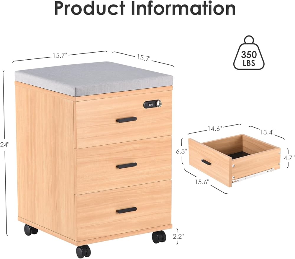 Upgrade your storage with our versatile and functional 3-drawer dresser. Made with high-quality wooden materials, this black dresser adds a touch of elegance to any room. The vertical design maximizes storage space while taking up minimal floor area, making it perfect for small bedrooms or tight corners. With its 20-inch width, it provides ample space for storing clothes, underwear, and other essentials. Maximize your space and keep your office neat and tidy with this practical filing solution. Its compact design allows it to fit under most desks, whether you're working from home or in a traditional business environment. The three spacious drawers offer ample storage space for documents, stationery, and other essentials. With the smart lock feature, you can protect your confidential files and ensure that only authorized personnel have access. The lock adds an extra layer of security to safeguard your sensitive information. Not only does this file cabinet help you stay organized, but it also doubles as a convenient seating solution. Simply remove the anti-slip cushion, and you have a temporary seat for your guests or quick meetings. This dresser features three spacious drawers that smoothly glide on wheels, allowing for convenient access to your belongings. The wheels also have locking mechanisms, ensuring stability and preventing accidental movement. Whether you use it as a bedroom dresser, a vanity set in your bathroom, or even as a side cabinet in your living room, this versatile piece of furniture will meet your storage needs. Organize your clothing, accessories, and more in this practical and stylish dresser. Say goodbye to cluttered spaces and hello to a tidy and organized room. Note: This dresser is also available in other colors to suit your specific preferences and needs.