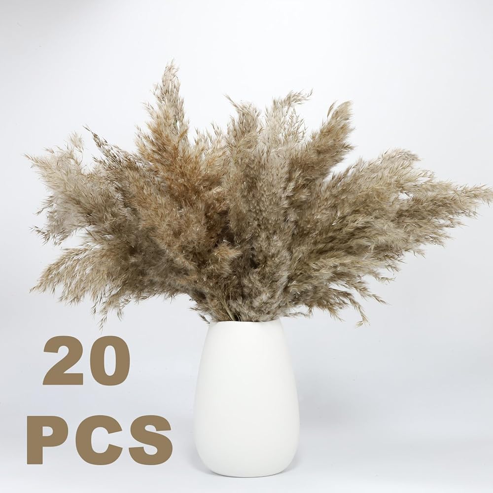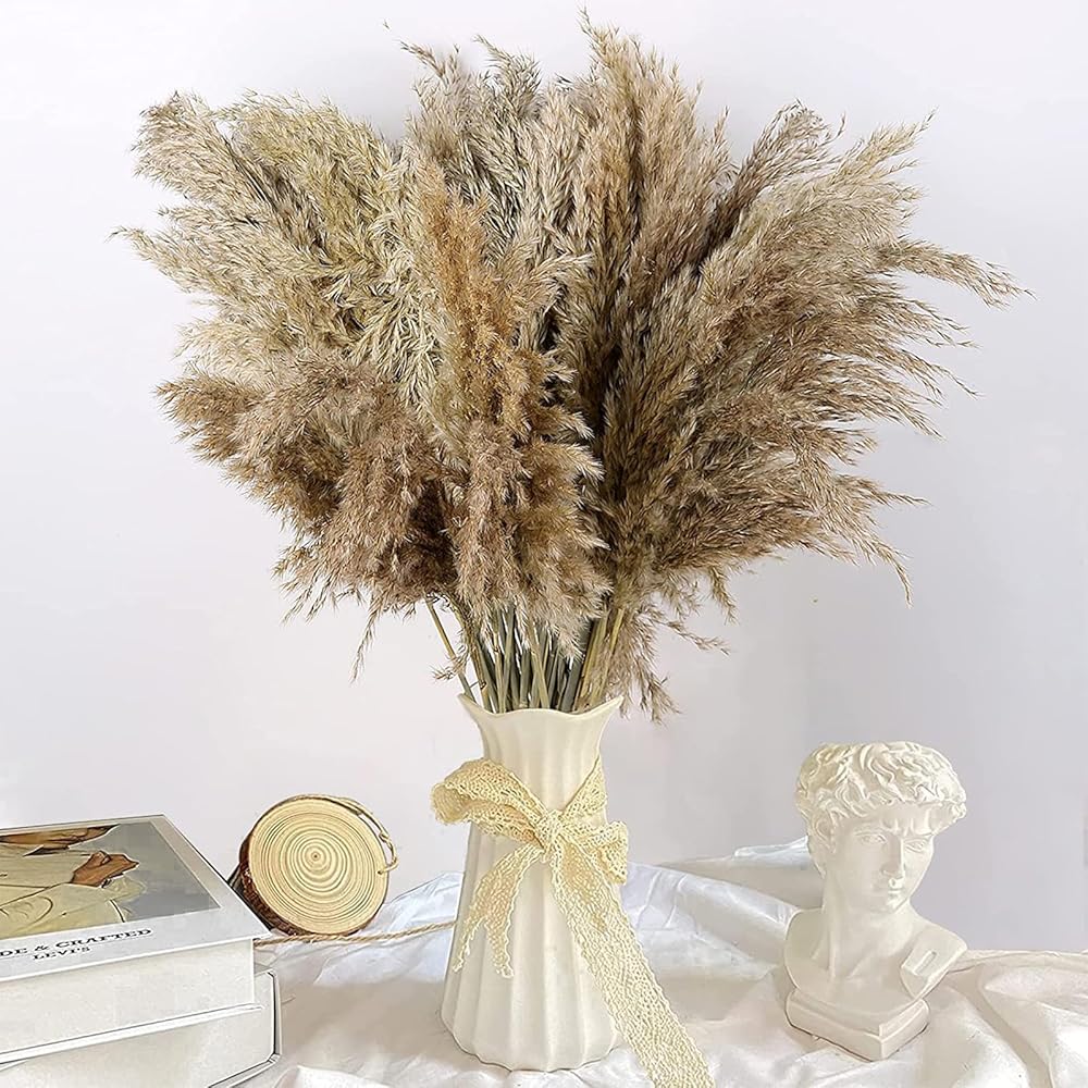 Nature-Inspired Beauty: 30 pcs Pampas grass. All made with naturally dried materials, ensuring a fluffy, feather-like appearance. The grass stems are long (17 inches) and suitable for 4-6 inch pottery or glass vases.