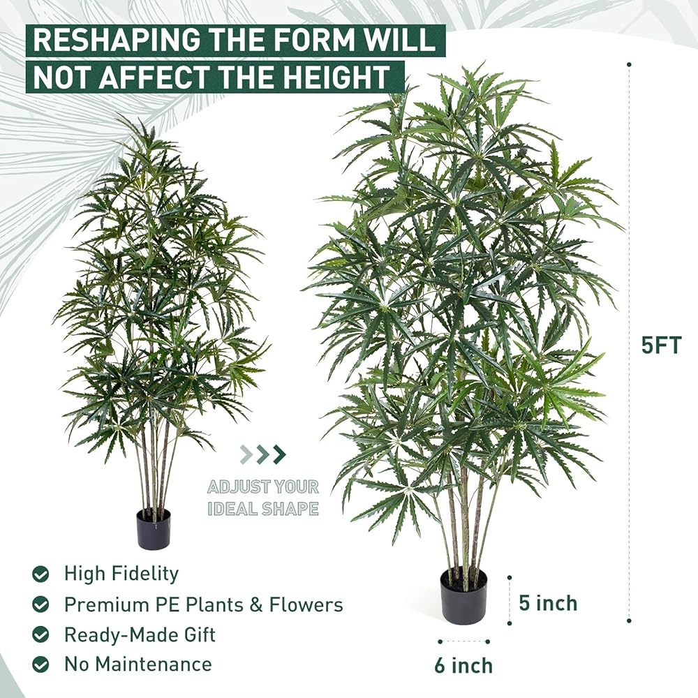 【Suitable for any Space】Designed to complement any decorative style, these faux plants indoor come with a 5ft black-decorative pot that can be installed into your favorite pot to add ambiance to your home or office.