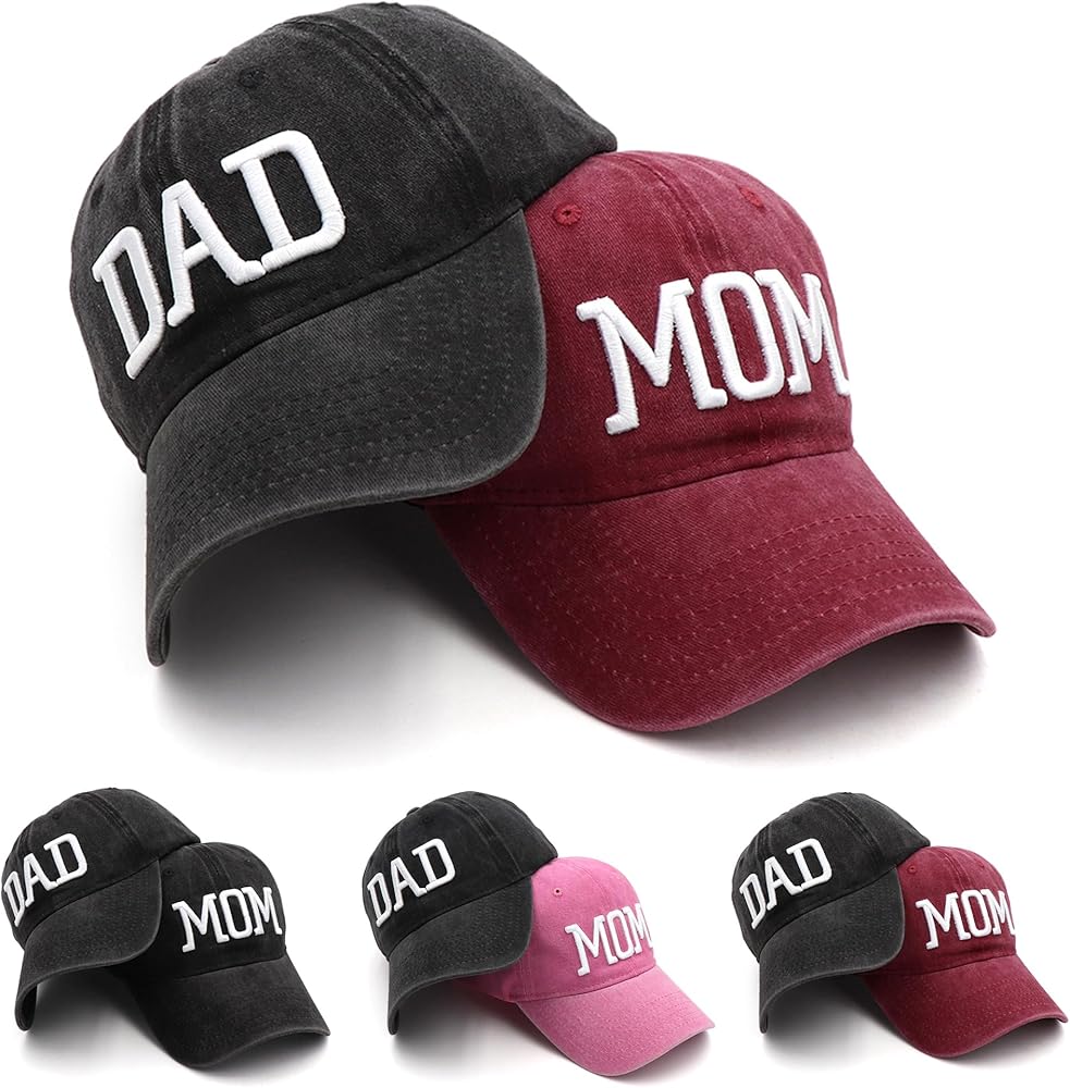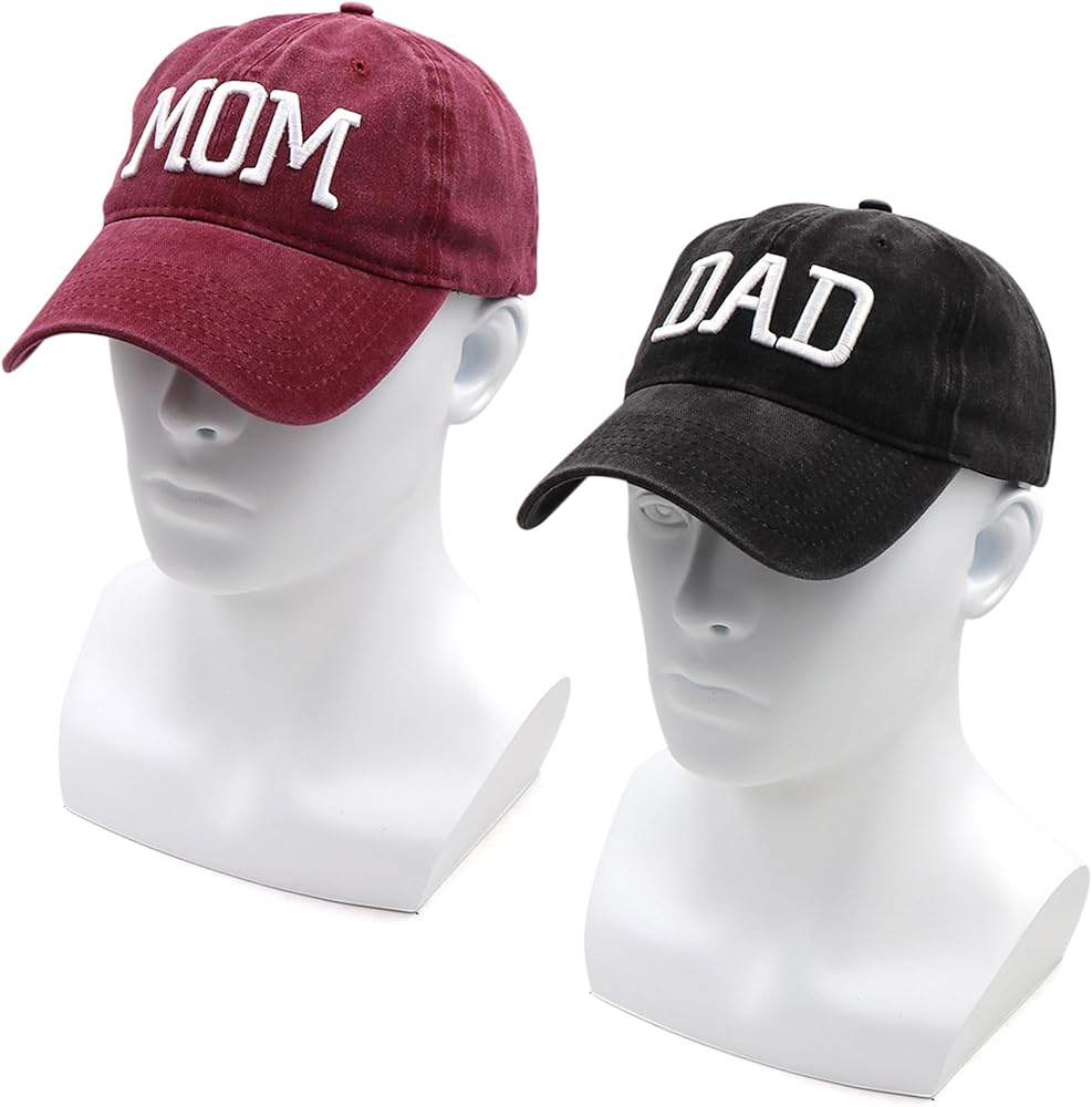 【ONE SIZE FITS MOST】The baseball caps for Mom and Dad fit most head circumference 22-24inch. Featuring an adjustable back strap, these baseball caps are made to provide a comfortable and snug fit for any head size.