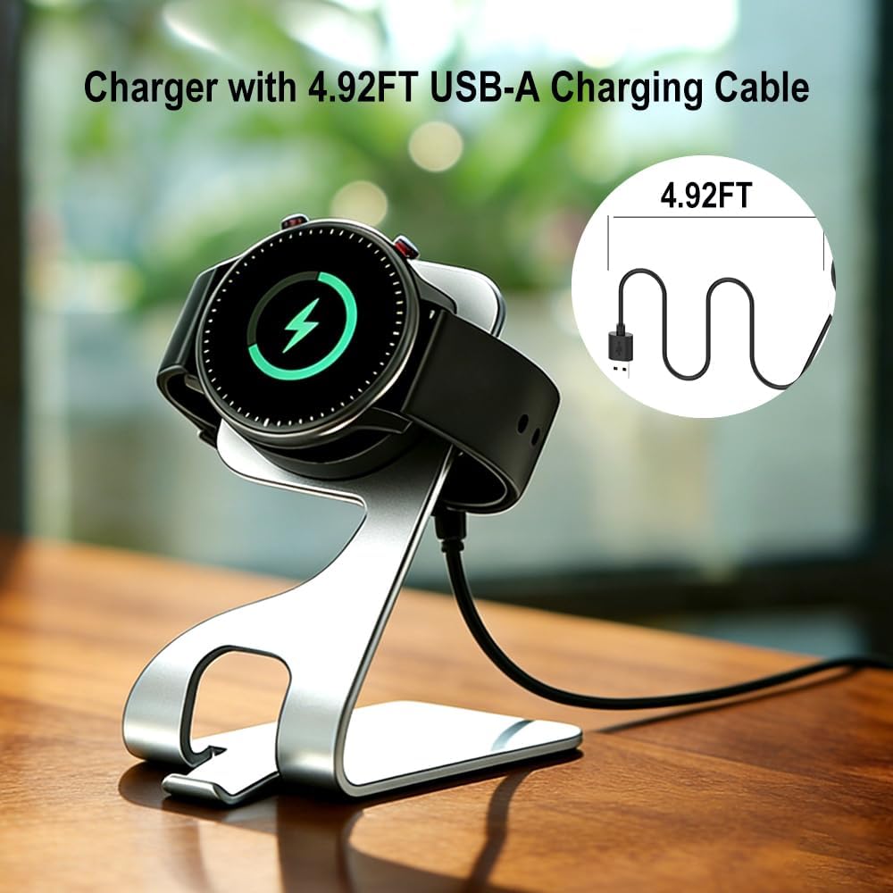 Aluminum Base Charging Docks Compatible With Amazfit Active,Active Edge,Amazfit Bip 5,Amazfit GTR mini,Amazfit GTS4 mini,Amazfit Bip 3/Bip 3 Pro,Amazfit Bip U,Amazfit GTS 2/GTS 2 mini,Amazfit GTR 2,Amazfit Pop/Pop Pro,Amazfit GTS 2e,Amazfit GTR 2e,Amazfit T-Rex Pro.with 4.92ft USB charging cable, can fast charging for your smartwatch ,Dock made of aluminum alloy material,45°angle design,providing easy and convenient charging and stable holding.