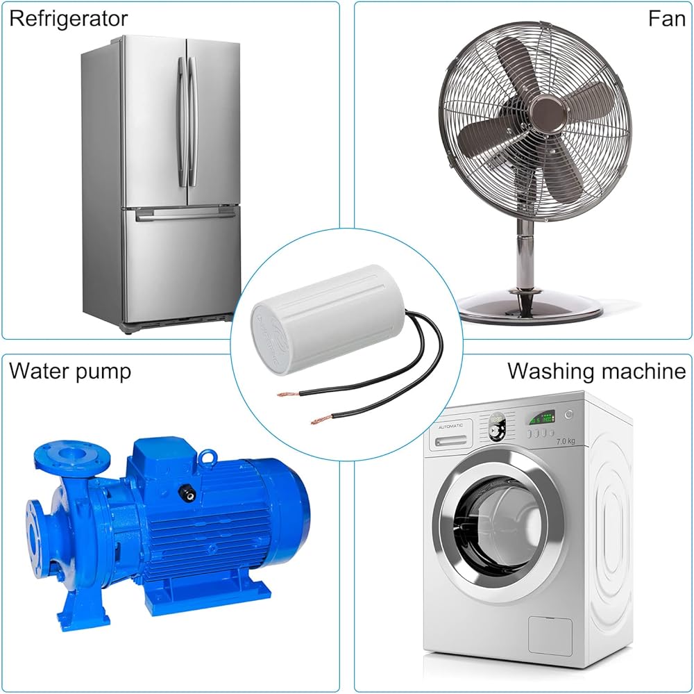 Suitable for the start-up of single-phase motors with frequency of 50Hz and 60Hz, such as air compressors, water pumps, pressure washers, air conditioners, washing machines, motors, generators, HVAC, fans, drills, splitters, saws, grinders, etc.