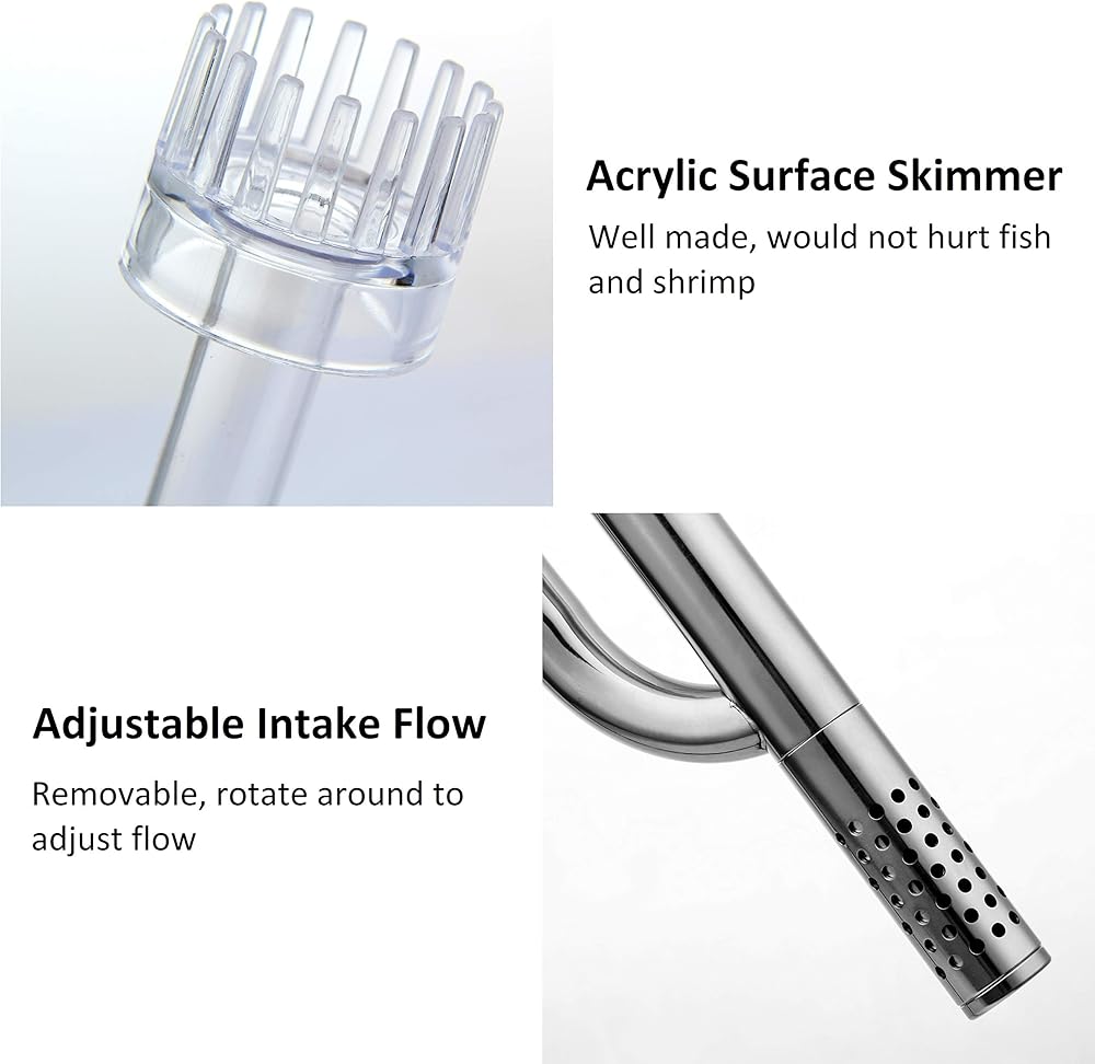 - Package included: 1x stainless steel surface skimmer inflow, 1x stainless steel lily pipe outflow, 2x acrylic fixture