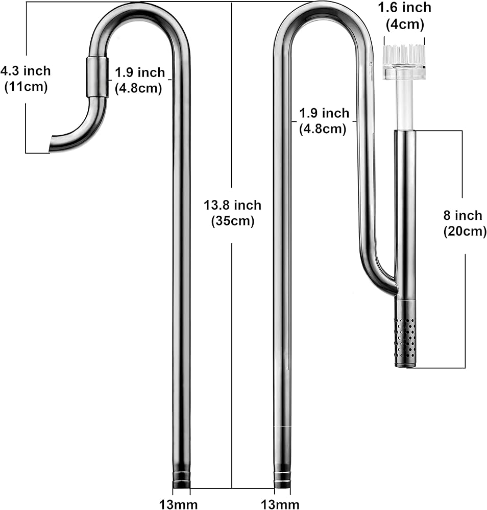 Metal Lily Pipe Surface Skimmer Steel Stainless Inflow Outflow for Aquarium Planted Tank (13mm for 12/16mm (1/2'') Tube)