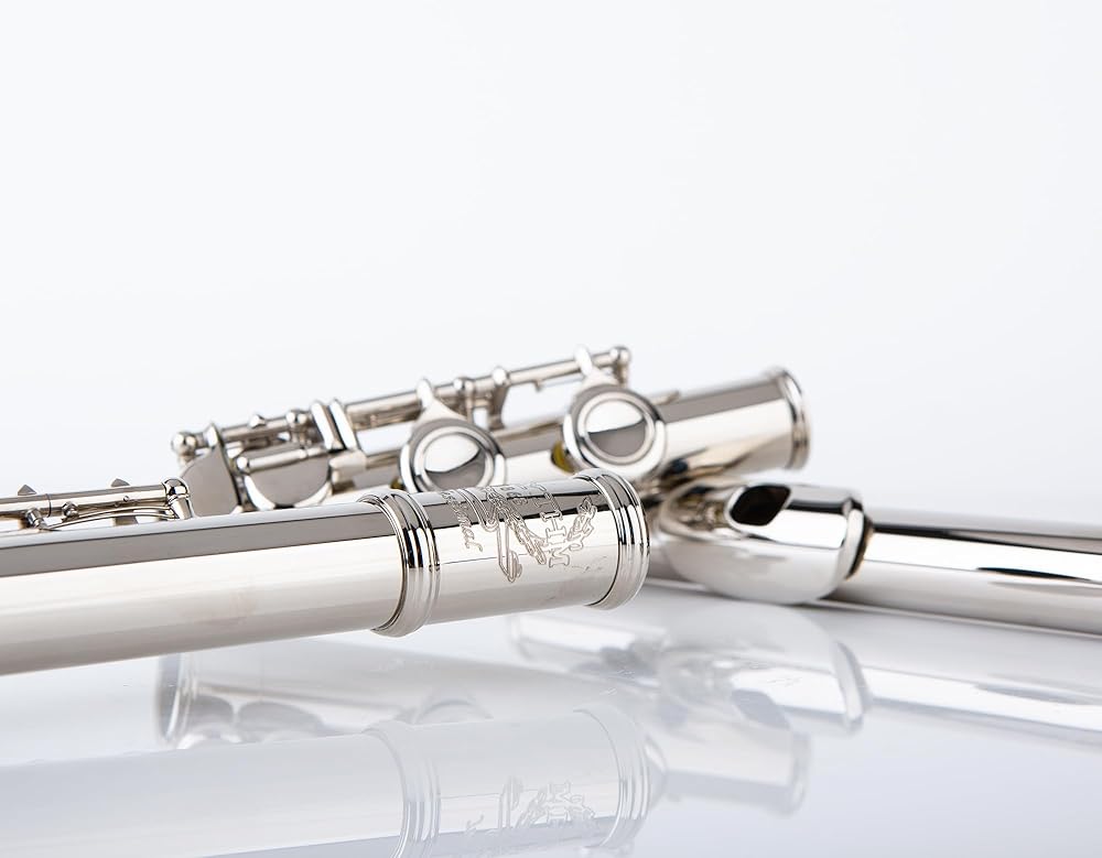 Rhythm C Flutes with Engraved Flower Closed Hole 16 Keys Flute For Student, Beginner with Stand, Carrying Case, Cleaning Kit, Gloves, Tuning Rod (Ni-Silver Color)