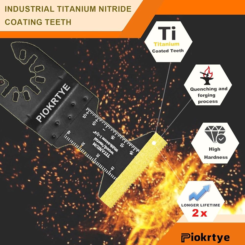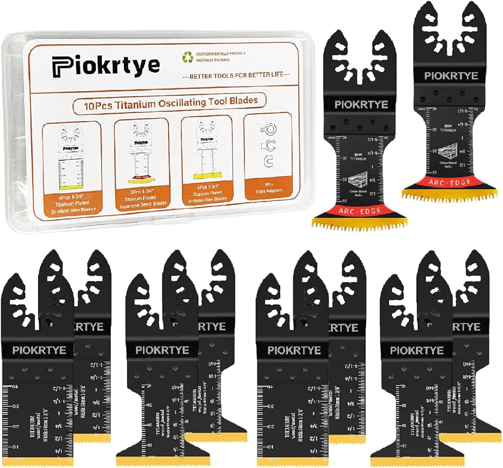 Titanium Oscillating Tool Blades Kit, 10Pcs Multi Tool Blades for Metal Wood Nails Screws Plastic, Japanese Tooth Arc Edge Blades Compatible with Dewalt Rockwell Milwaukee Makita Bosch